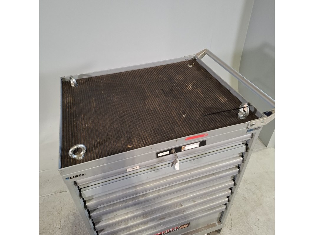 Merk: Lista Product: Gevulde gereedschapswagen Afmeting: HxBxD ca. 121x80x58 cm. Conditie: gebruikt Specificaties: Inhoud bestaande uit: steeksleutels, schroevendraaiers, doppenset en etc. Let op, kar is incompleet! Verdere technische staat en compleetheid onbekend.