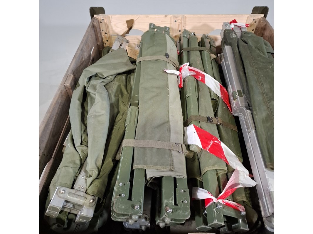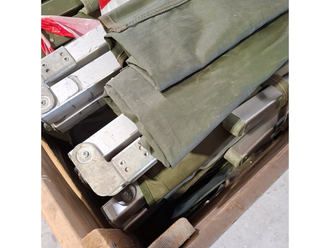 Product: Partij veldbedden Conditie: gebruikt Specificaties: Technische staat en compleetheid onbekend. Exclusief palletkist
