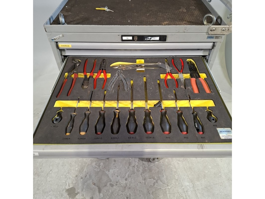 Merk: Lista Product: Gevulde gereedschapswagen Afmeting: HxBxD ca. 119x80x57 cm. Conditie: gebruikt Specificaties: Inhoud lades: schroevendraaiers, steeksleutels, tangen en etc. Let op, incompleet! Technische staat en compleetheid onbekend. Exclusief palletkist