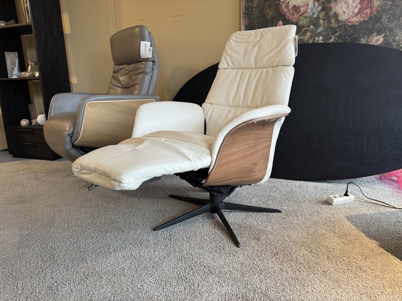 Relaxfauteuil, wit leder, elektrisch verstelbaar, design