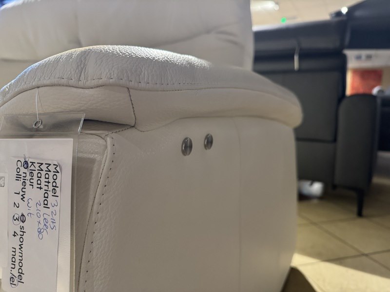 Merk: ` Product: 3-zits bank Kleur: Wit Materiaal: Leder Afmeting: 210x80 cm Specificaties: Nieuw uit verpakking, 3 colli