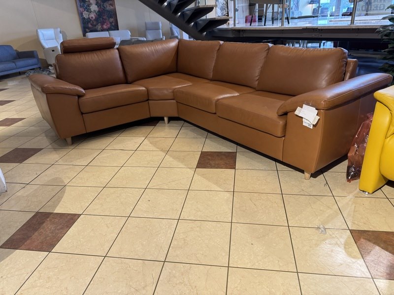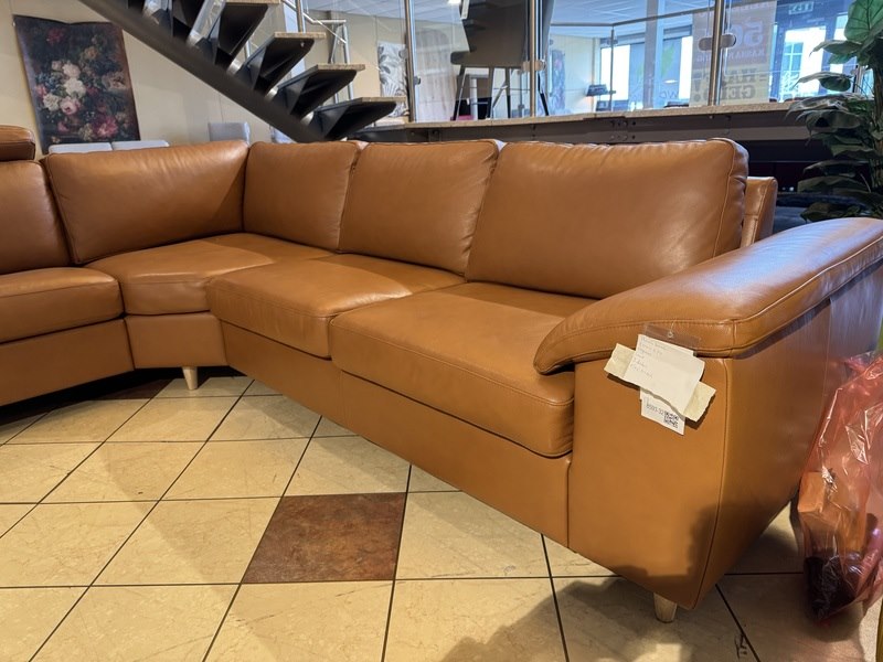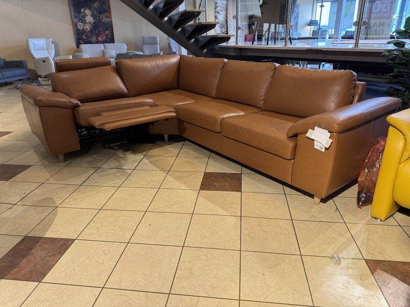 Hoekbank, cognac leder, elektrisch verstelbaar