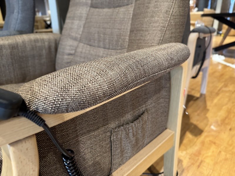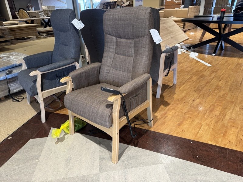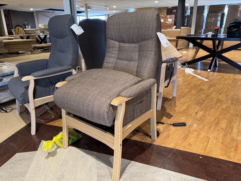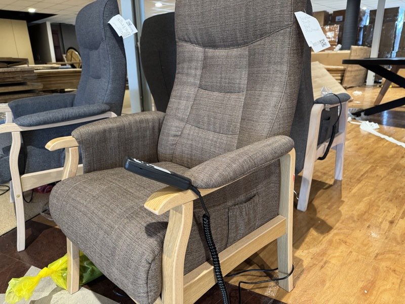Sta-op stoel, taupe stof, elektrisch verstelbaar