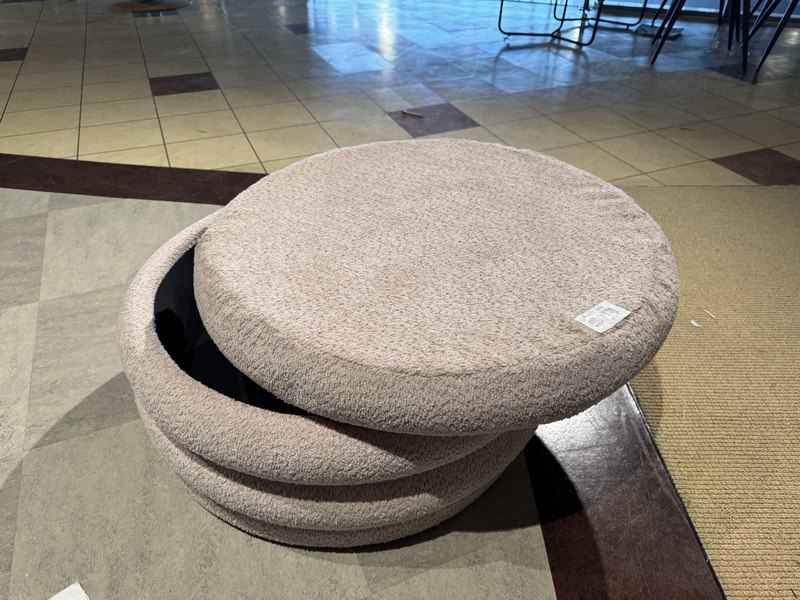 Product: Poef Kleur: Roze Materiaal: Stof Specificaties: Nieuw uit verpakking