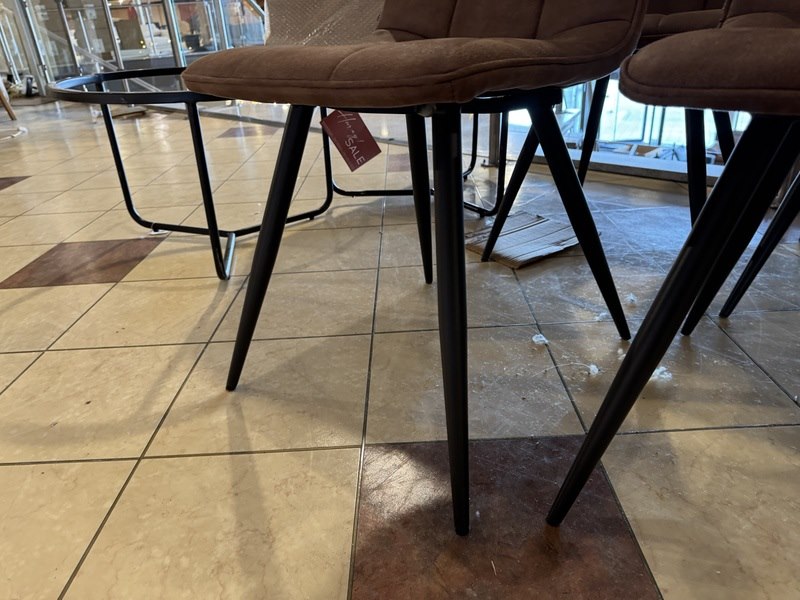 Set van 6 eetkamerstoelen, bruin stof, zwarte poten