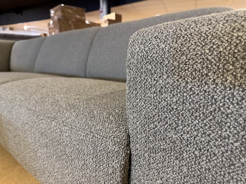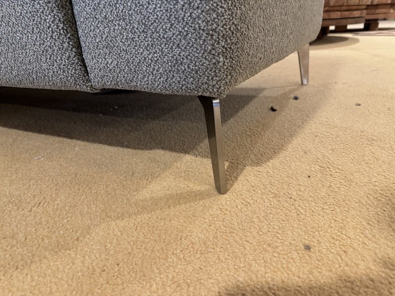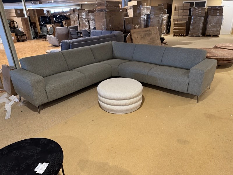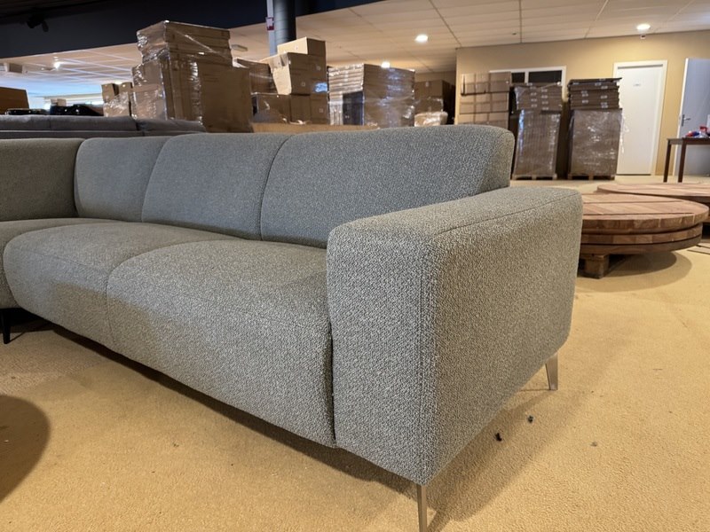 Hoekbank + hocker, groen stof, rvs poten
