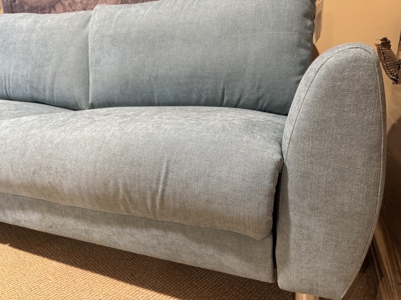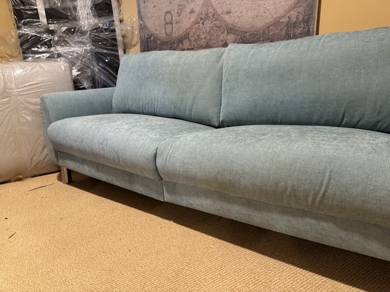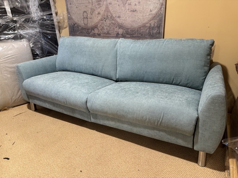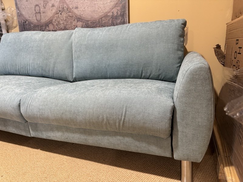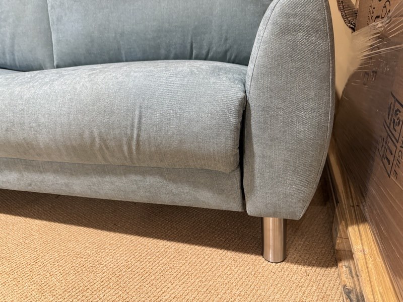 2,5 zits bank, blauw stof, rvs poten