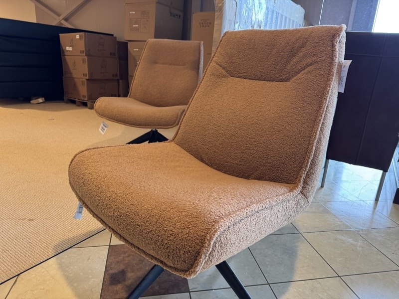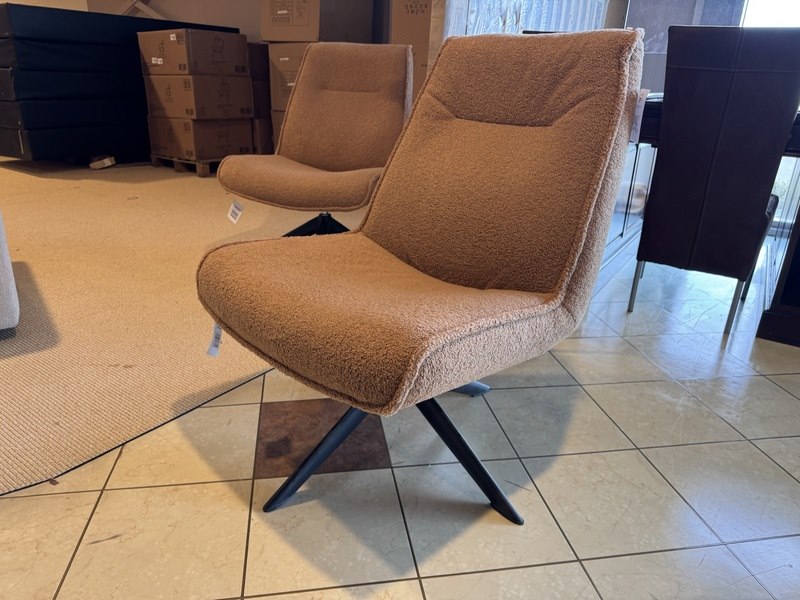 Fauteuil, cognac stof, zwart metalen poot
