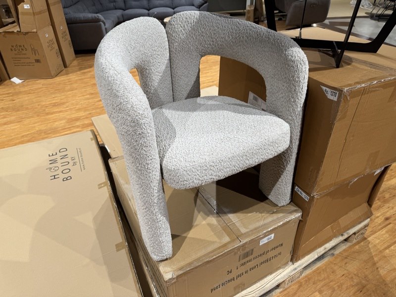 Merk: Home Bound Product: Stoel Kleur: Zand Materiaal: Bouclé stof Specificaties: Nieuw in verpakking
