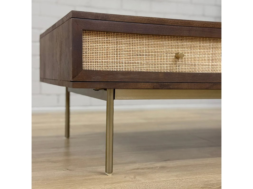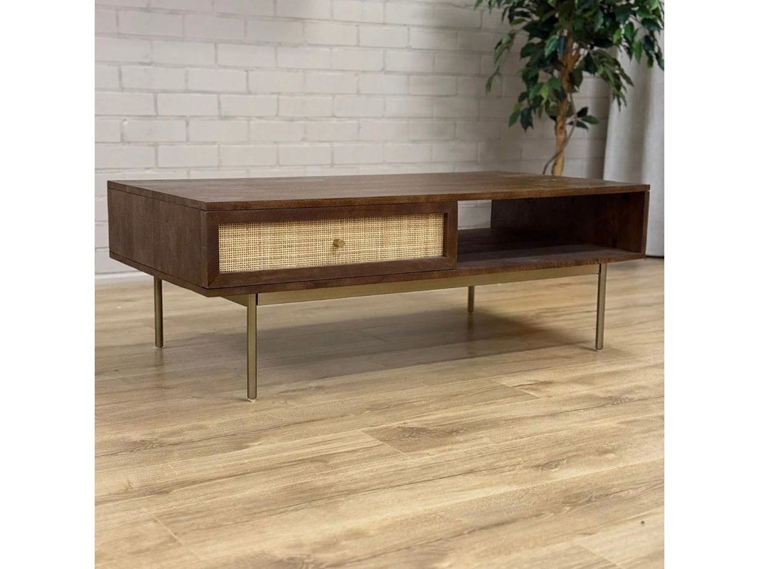 Salontafel, walnoot, mangohout + rattan