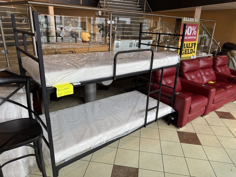 Product: Stapelbed Kleur: Zwart Materiaal: Metaal Afmeting: 200x90x170(h) cm Specificaties: Nieuw in verpakking