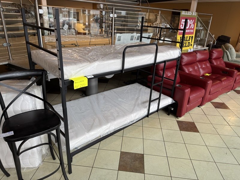 Product: Stapelbed Kleur: Zwart Materiaal: Metaal Afmeting: 200x90x170(h) cm Specificaties: Nieuw in verpakking