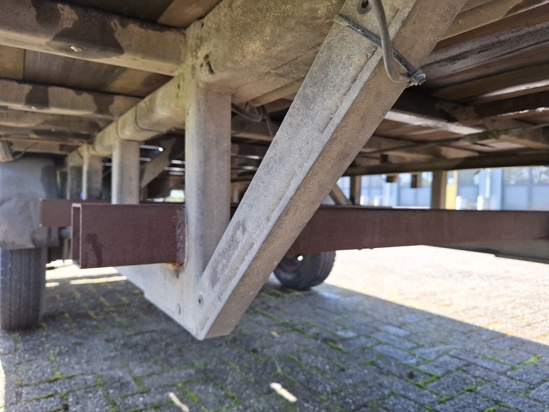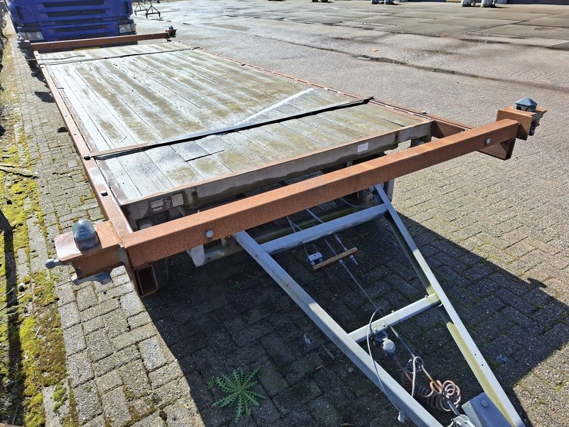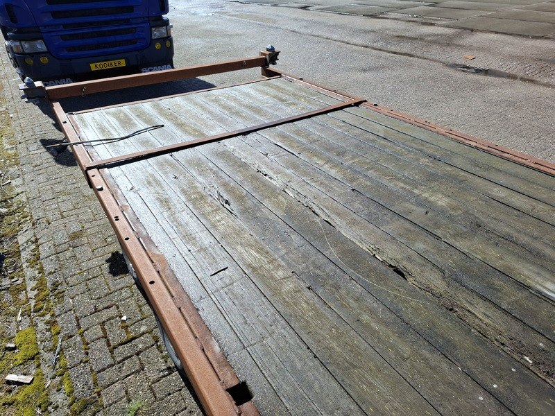 Merk: kar Product: Schamelaanhanger v.z.v. containertransportframe Afmeting: bodemmaat lxb ca 500x185cm BouwJaar: 1991 Specificaties: kenteken: WG-79-PD v.z.v. frame t.b.v. 20ft container