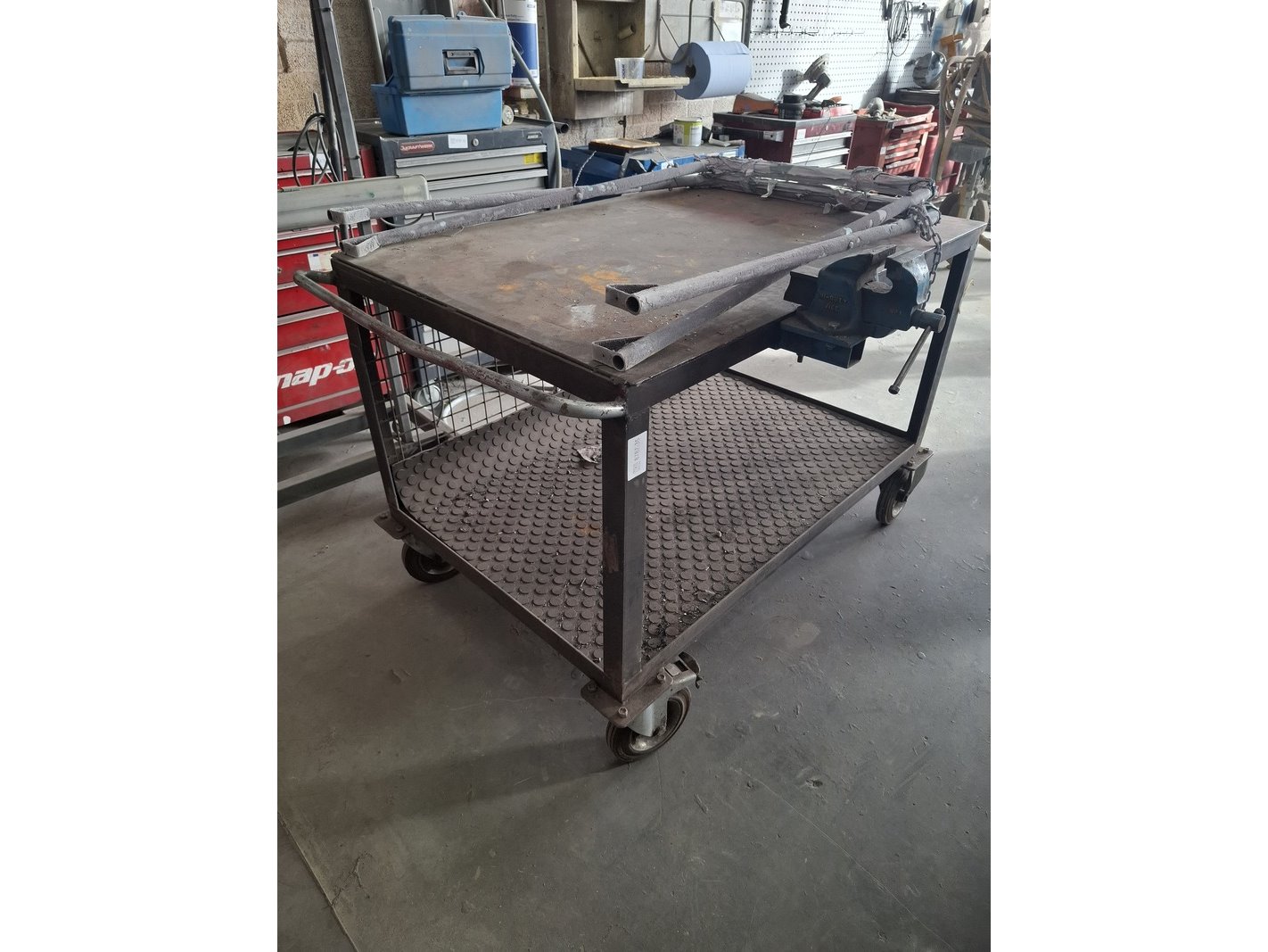 Product: Werktafel met bankschroef Materiaal: metaal Afmeting: afm. ca 140x85x93cm