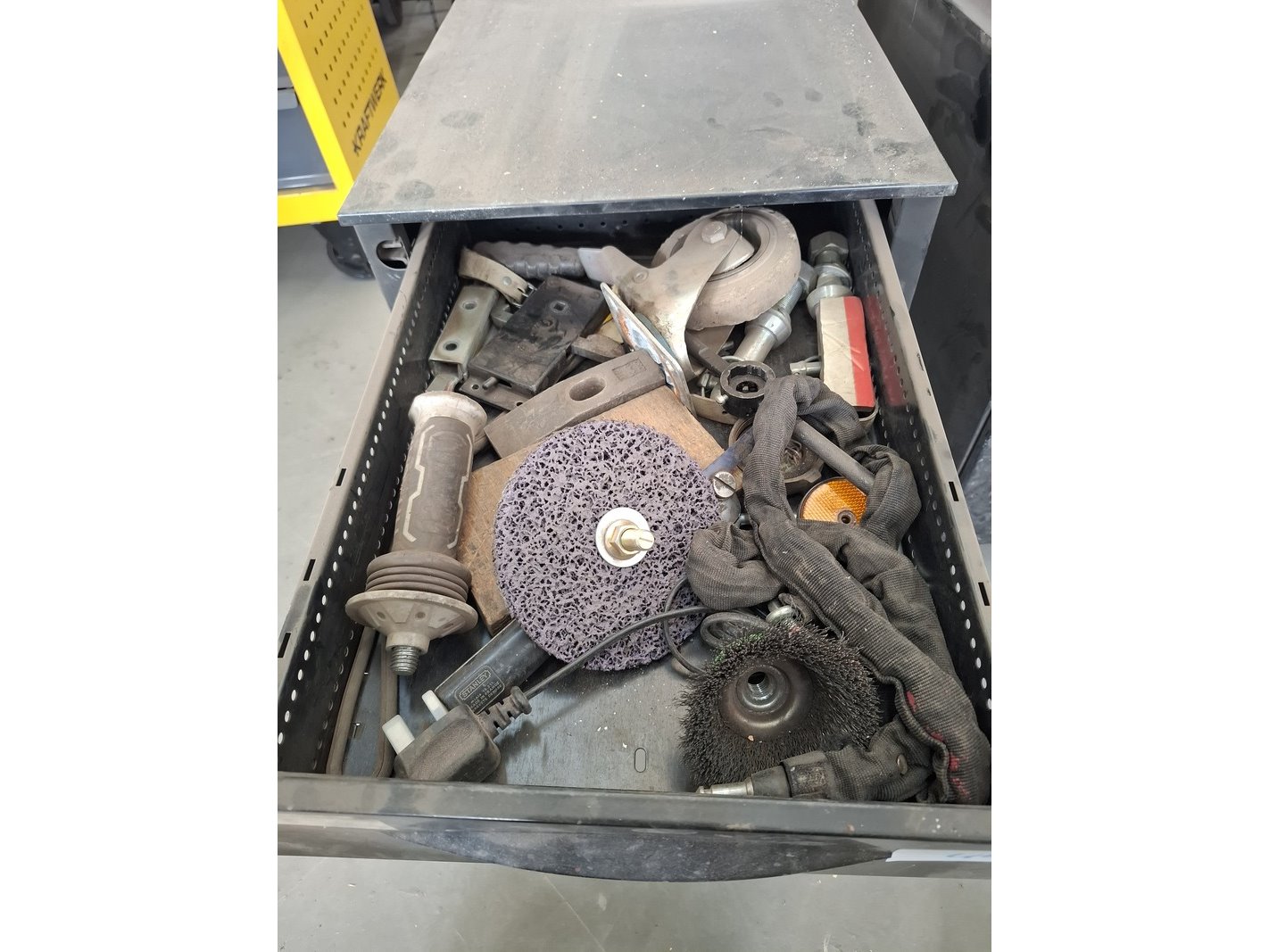 Product: Gereedschapswagen met inhoud Afmeting: afm. ca 70x47x98cm Specificaties: diverse handgereedschap, incl. 3x metalen ladekast