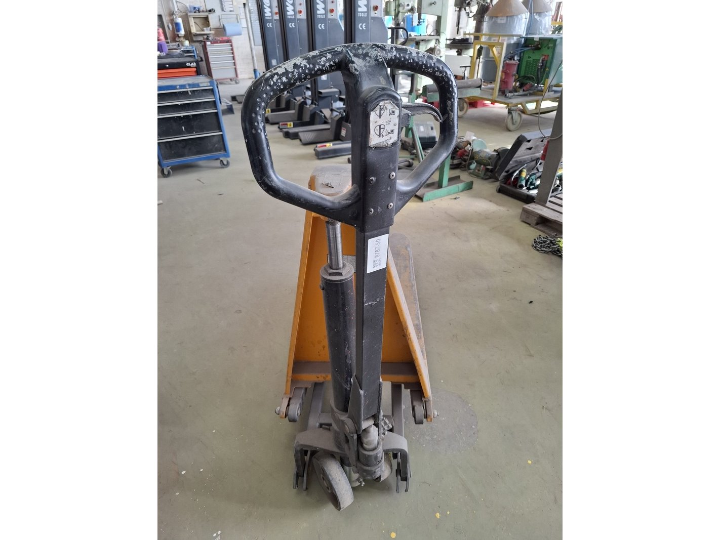 Merk: ALLifter Product: Palletwagen Specificaties: max 1000kg, max hefhoogte ca 80cm, lepellengte ca 115cm