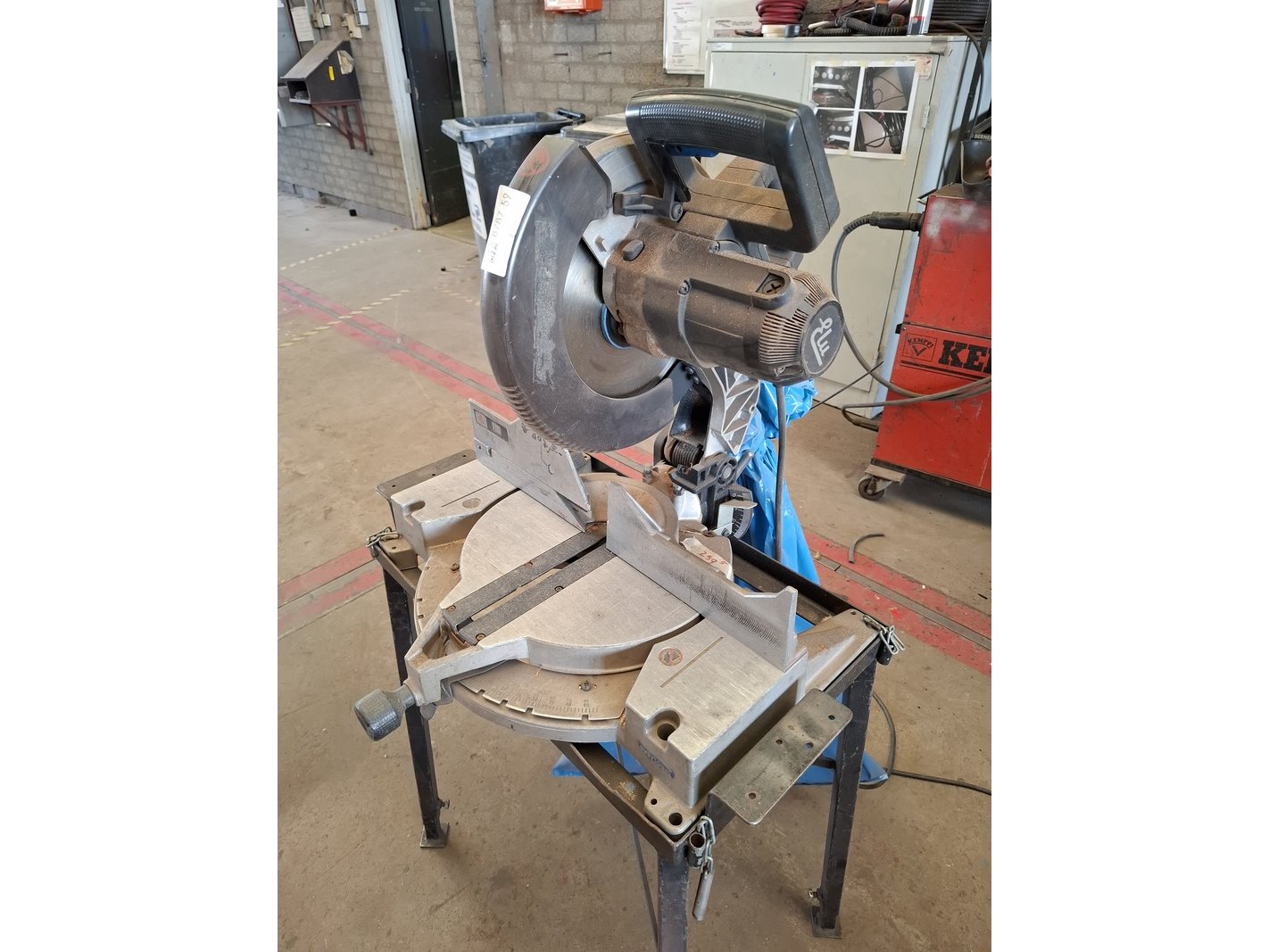 Merk: Elu Product: Afkortzaag op statief BouwJaar: 1997 Specificaties: 230V, 1500W, zaagbladdiam ca 305mm
