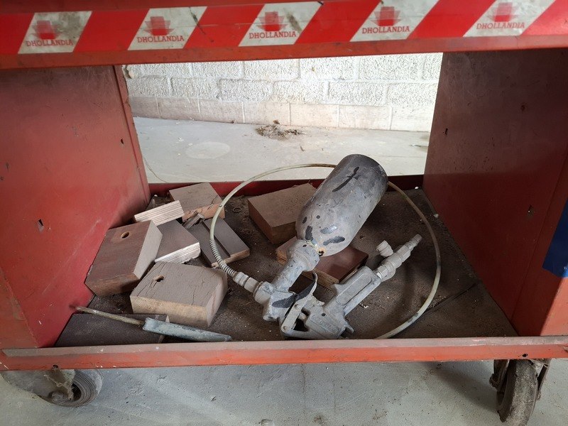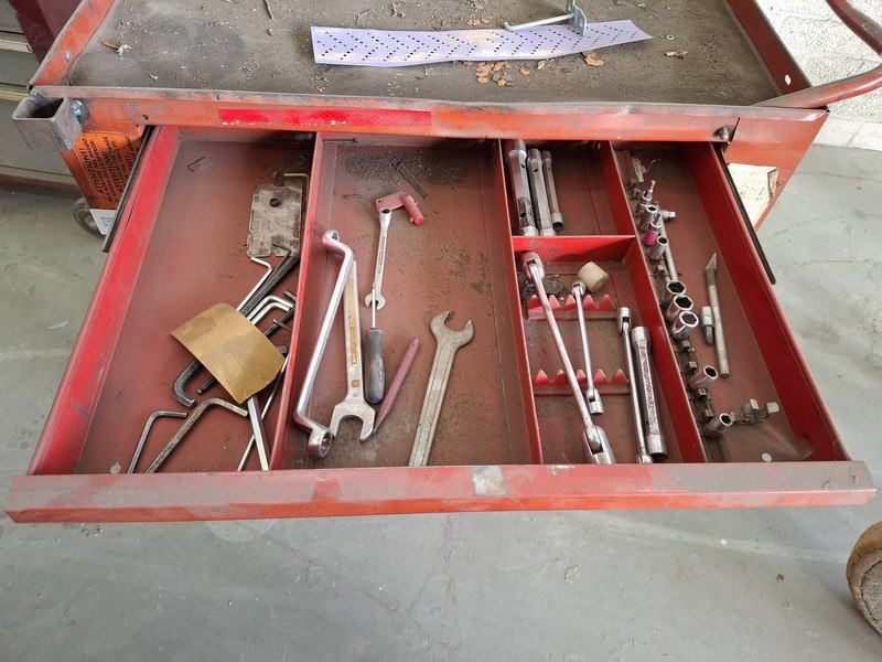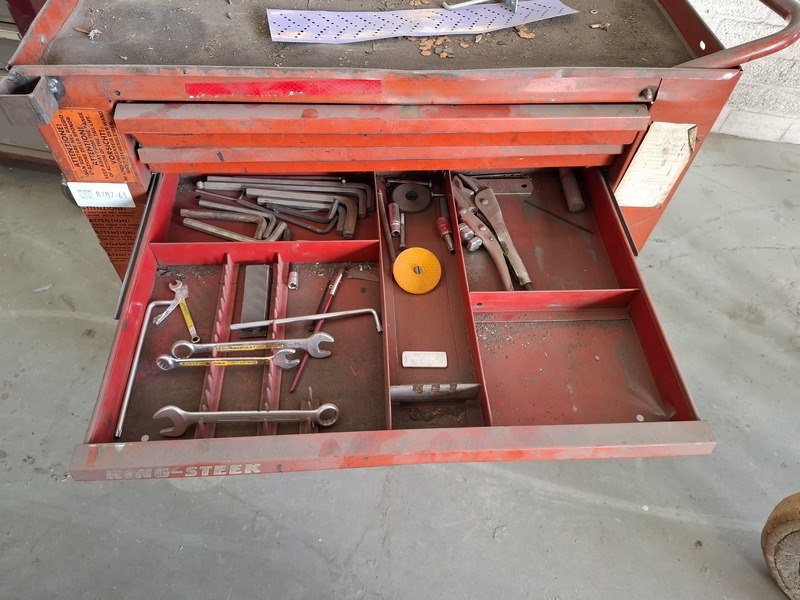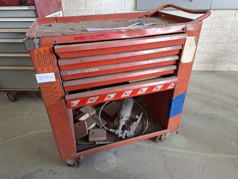 Product: Gereedschapswagen met inhoud Afmeting: afm. ca 80x46x84cm Specificaties: incl. diverse handgereedschap
