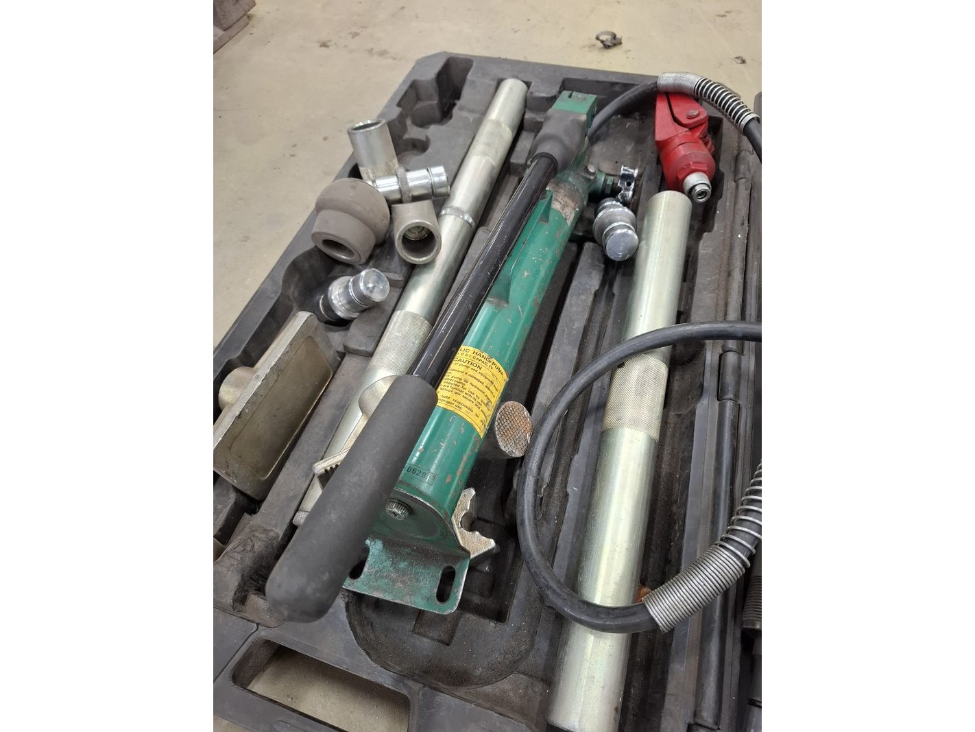 Product: Uitdeukset Specificaties: handpomp met diverse toebehoren