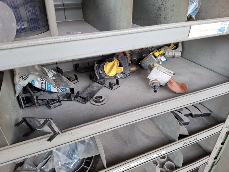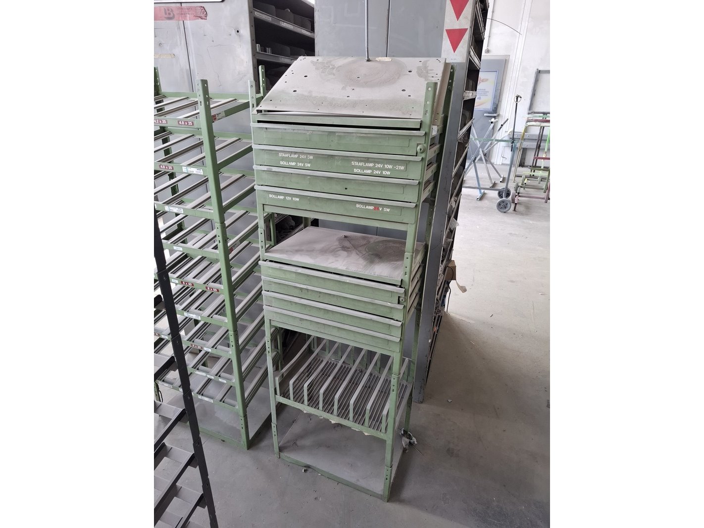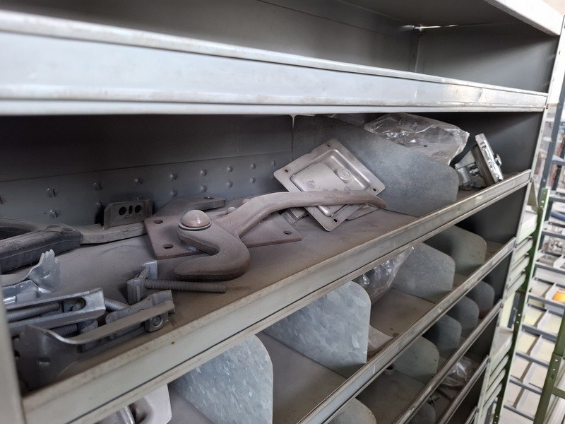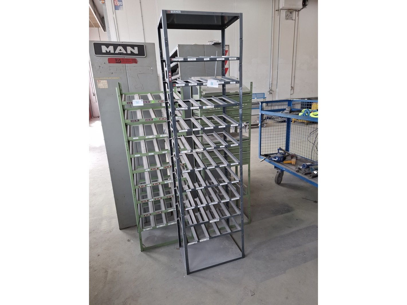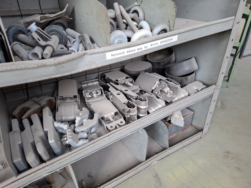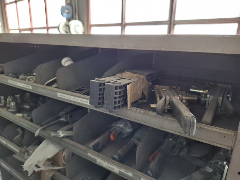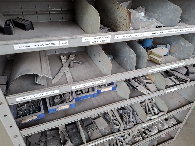 Product: 5x Diverse werkplaatskast Specificaties: bestaande uit: 2x dubbele materiaalkast, hxbxd ca 198x100x60cm; 3x grijpvoorraad stelling max hxb ca 200x54cm; diverse inhoud