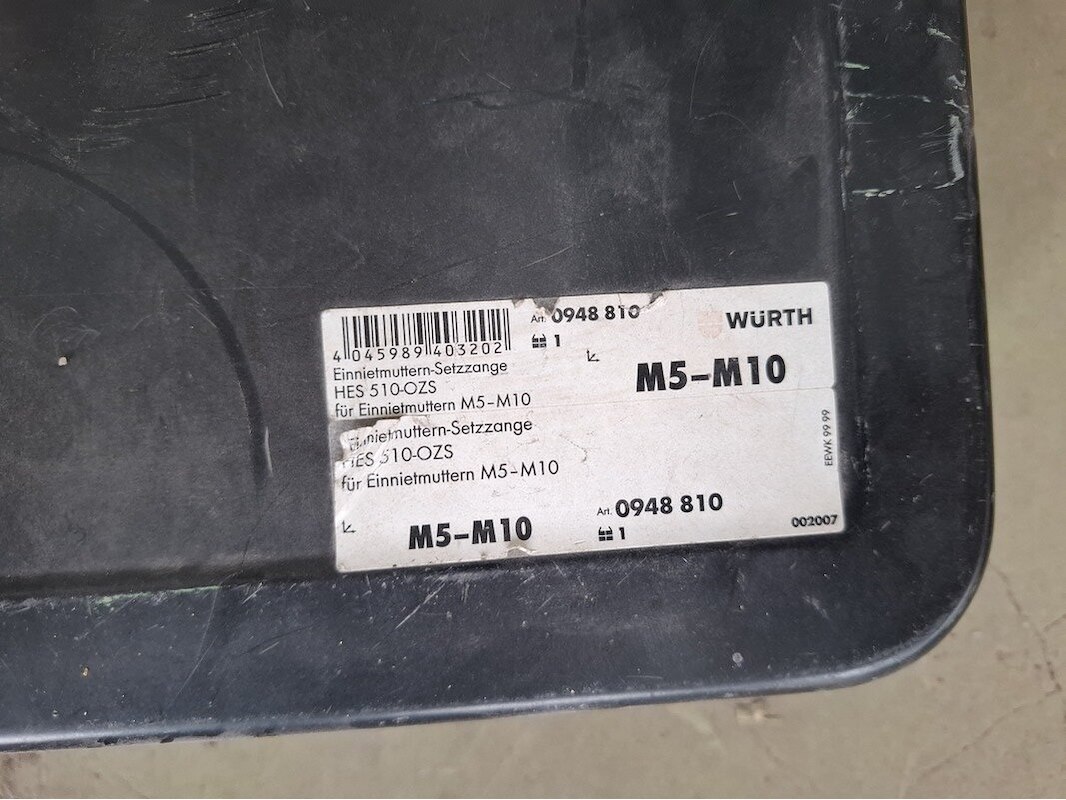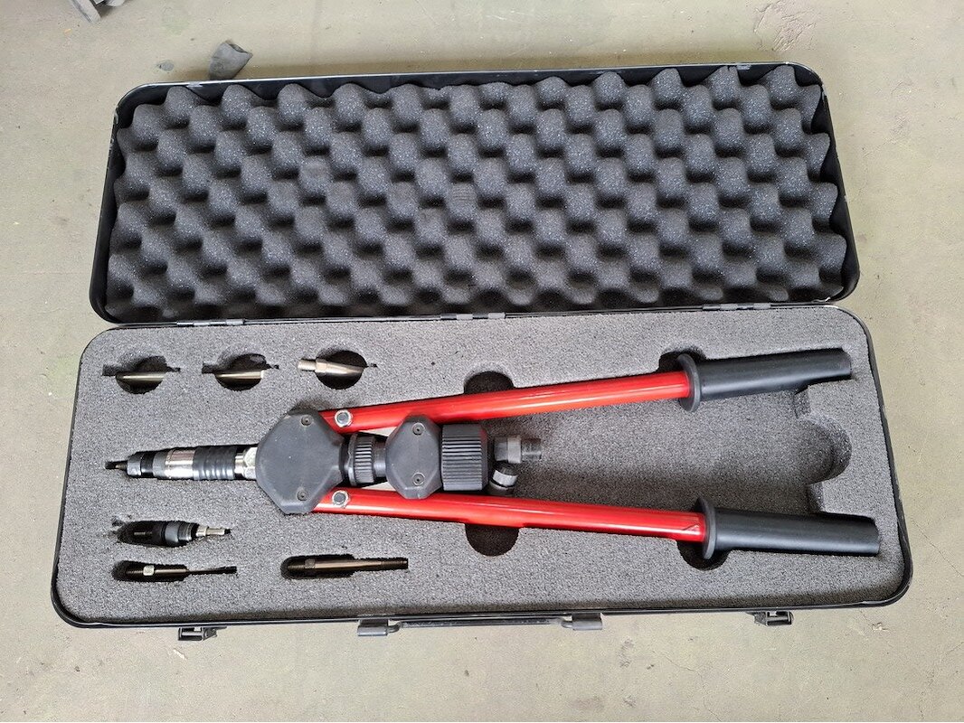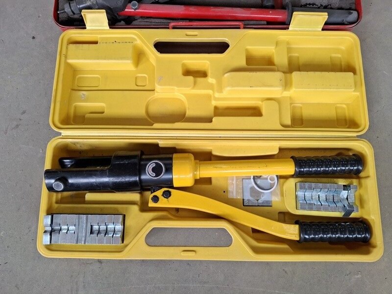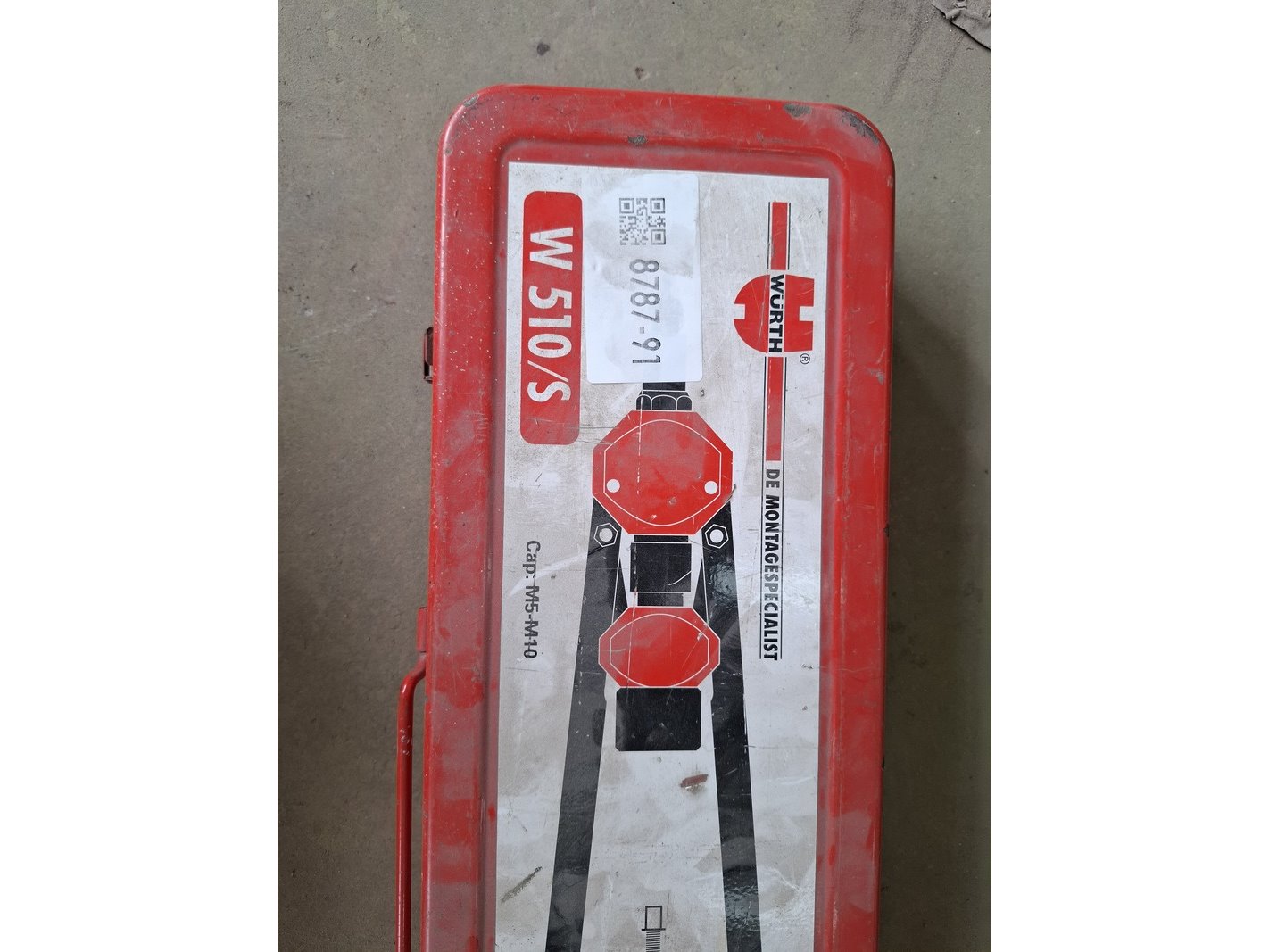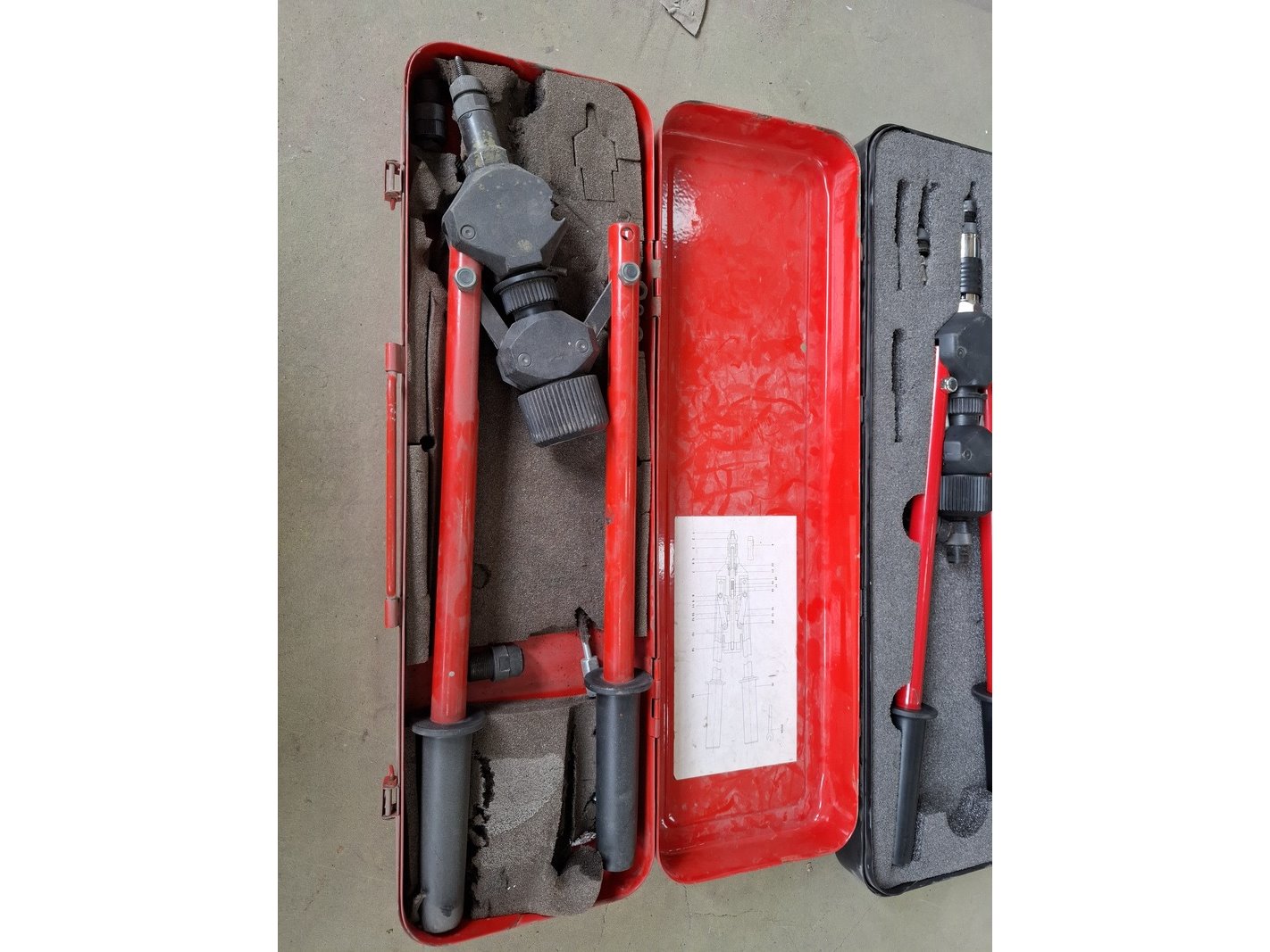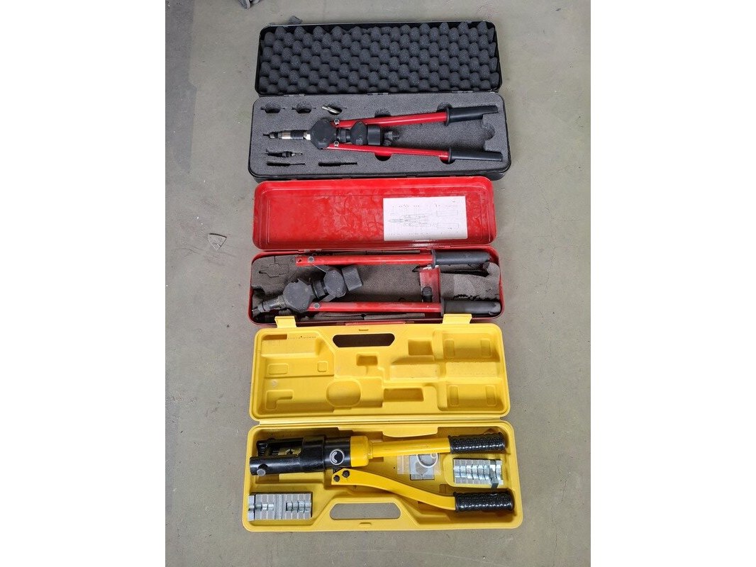 Product: 2x Popnageltang en 1x krimptang Specificaties: 2x popnageltang Wurth, cap M5-10; 1x hydraulische krimptang HBM max 12ton