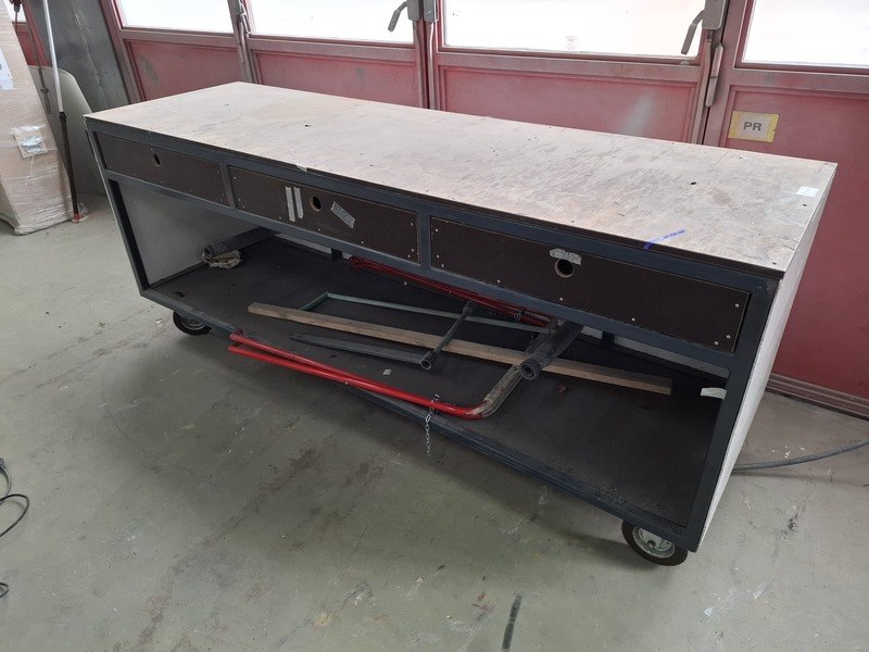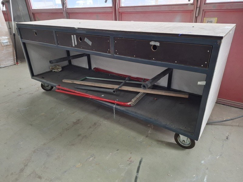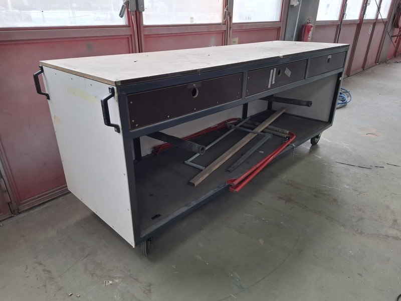Product: Verrijdbare werkbank Afmeting: lxbxh ca 260x80x106cm