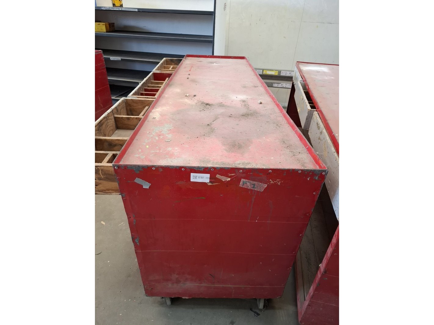 Product: Verrijdbare werkbank Materiaal: metaal Afmeting: lxbxh ca 262x78x105cm Specificaties: met houten lades