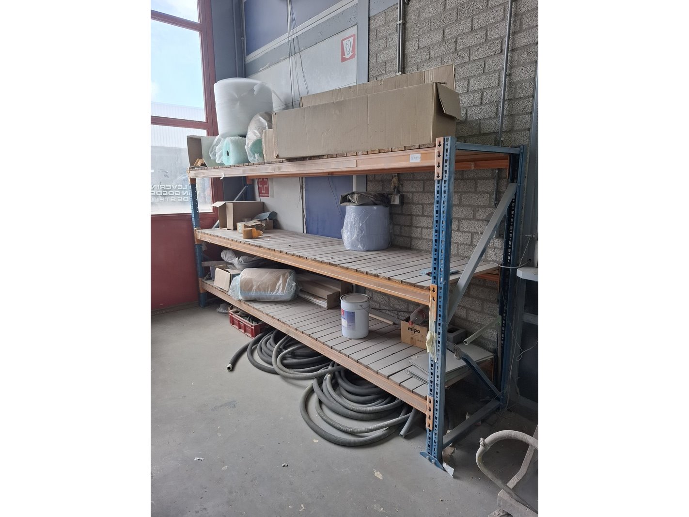 Product: Palletstelling Afmeting: lxbxh ca 375x80x180cm Specificaties: bestaande uit 2 jukken en 6 liggers