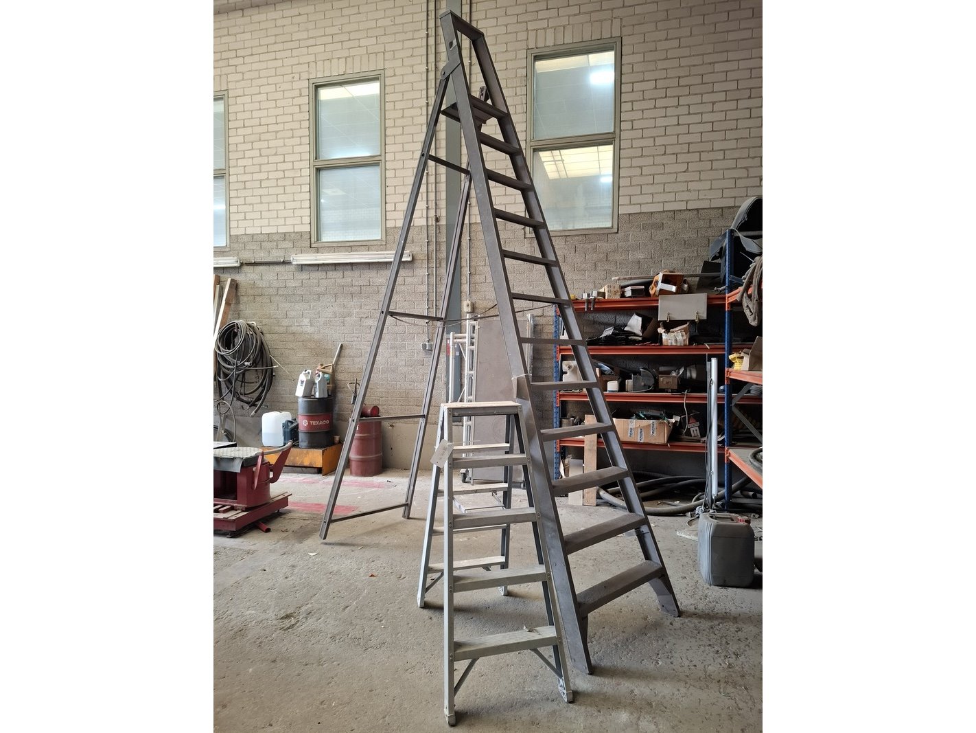 Product: 2x Werktrap Specificaties: waarvan 1x 2x5 treeds en 1x 12 treeds incl. bordes