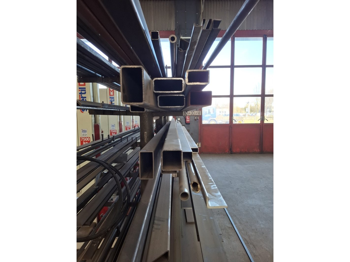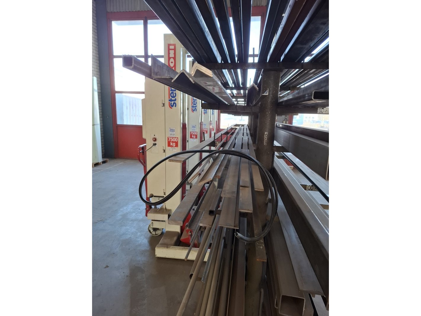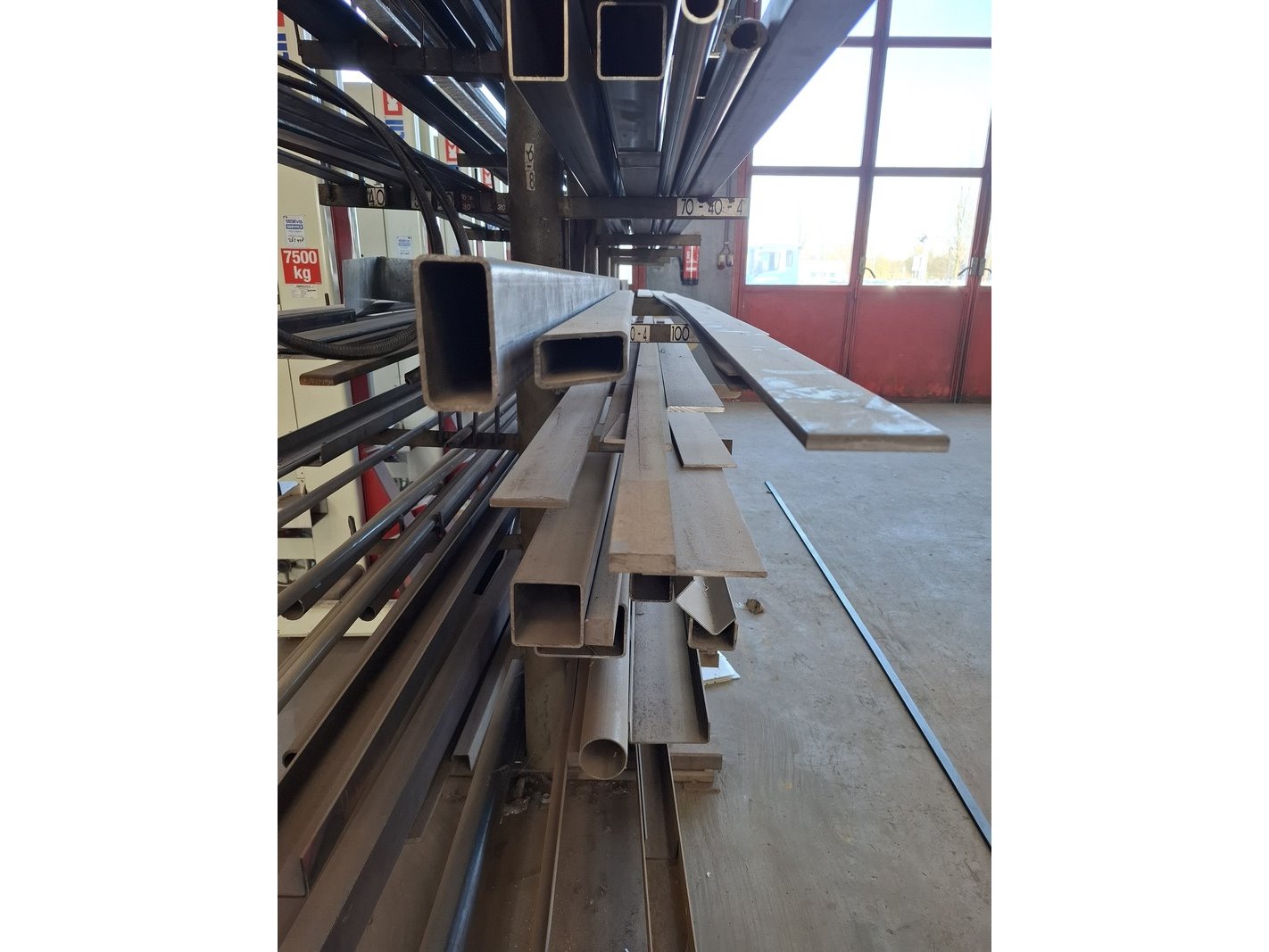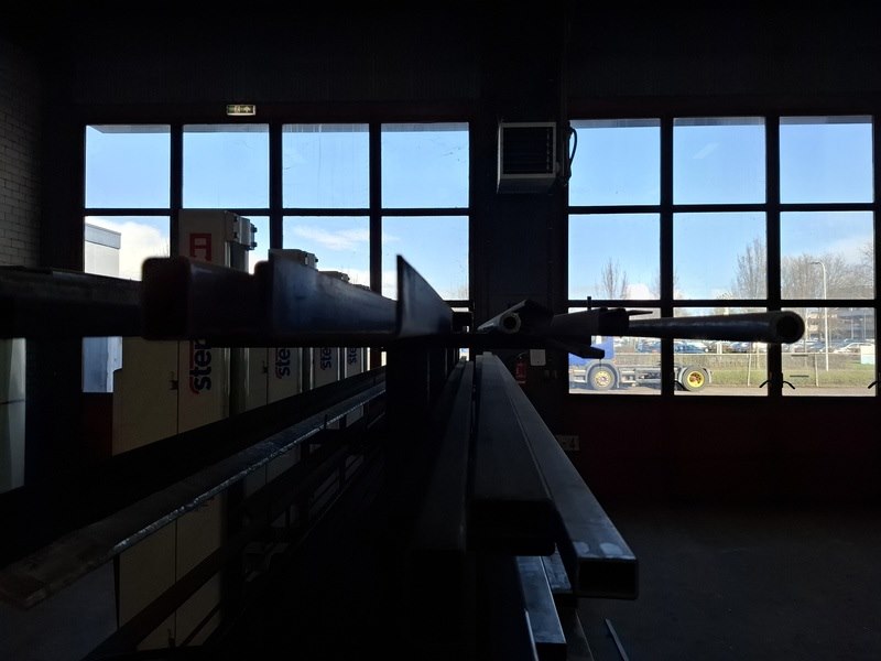 Product: Metaalstelling met partij metaal Afmeting: afm. ca 480x85x200cm Specificaties: metalen profielen tot een lengte van 600cm