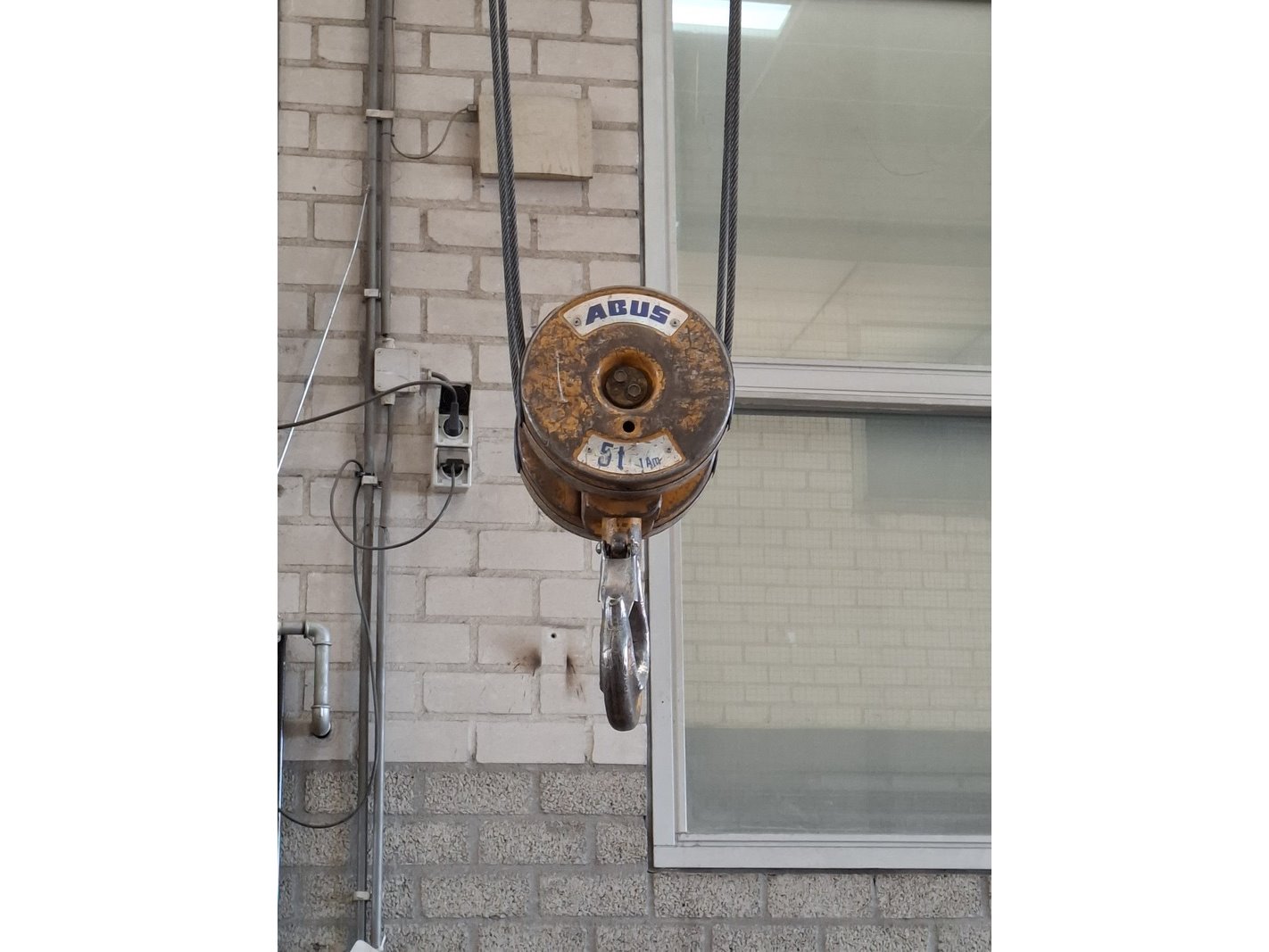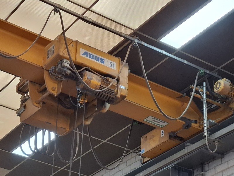 Merk: Abus Product: Bovenloopkraan met takel Afmeting: lengte ca 11,25cm Specificaties: max 5000kg