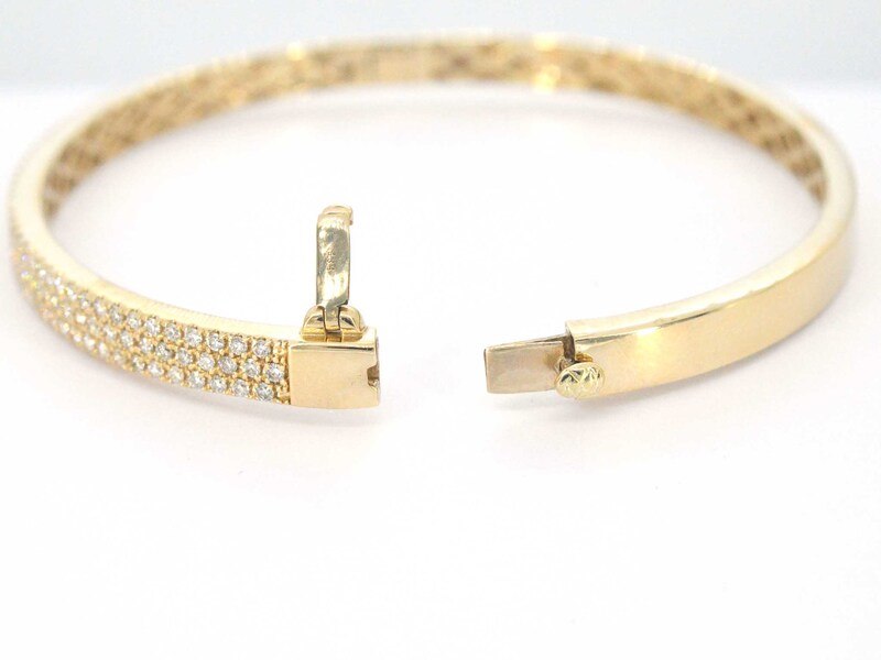 Product: Gouden vaste armband met briljant geslepen diamant Specificaties: Diamant: Natuurlijk Aantal: 151 stuks Slijpvorm: Briljant geslepen Gewicht (carat): 1.50 carat Kleur: F-G Zuiverheid: SI-P Juweel: Armband Gewicht: 16 gram Afmetingen/lengte: maat: 17 (56 mm) Materiaal: 18K goud (750) Conditie: Nieuw Verpakking: Luxe sieradendoos Toelichting: De kwaliteit is overgenomen van het rapport behorend bij item. De waardebepaling is een beoordeling van een gecertificeerde diamantair, gebaseerd op consumentenprijzen. Consumentenprijs: € 18.463,-