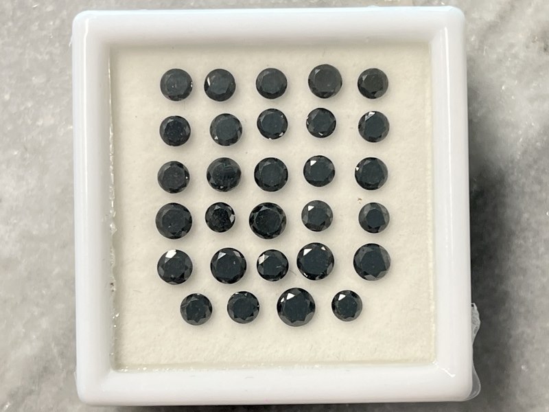 Product: Diamant - 5.06 carat natuurlijke zwarte diamant (gecertificeerd) Specificaties: Diamant: Natuurlijk Aantal: 29 stuks Slijpvorm: Rond geslepen Gewicht (carat): 5.06 carat Kleur: Zwart (enhanced) Zuiverheid: Opaak Conditie: Nieuw Verpakking: Edelsteendoos Toelichting: De kwaliteit is overgenomen van het rapport behorend bij item. De waardebepaling is een beoordeling van een gecertificeerde diamantair, gebaseerd op consumentenprijzen. Extra informatie: Aan de oppervlakte van deze diamanten zitten nog natuurlijke kenmerken van ruwe diamant, dit kan voor een leek lijken op beschadigingen Consumentenprijs: € 4.460,-