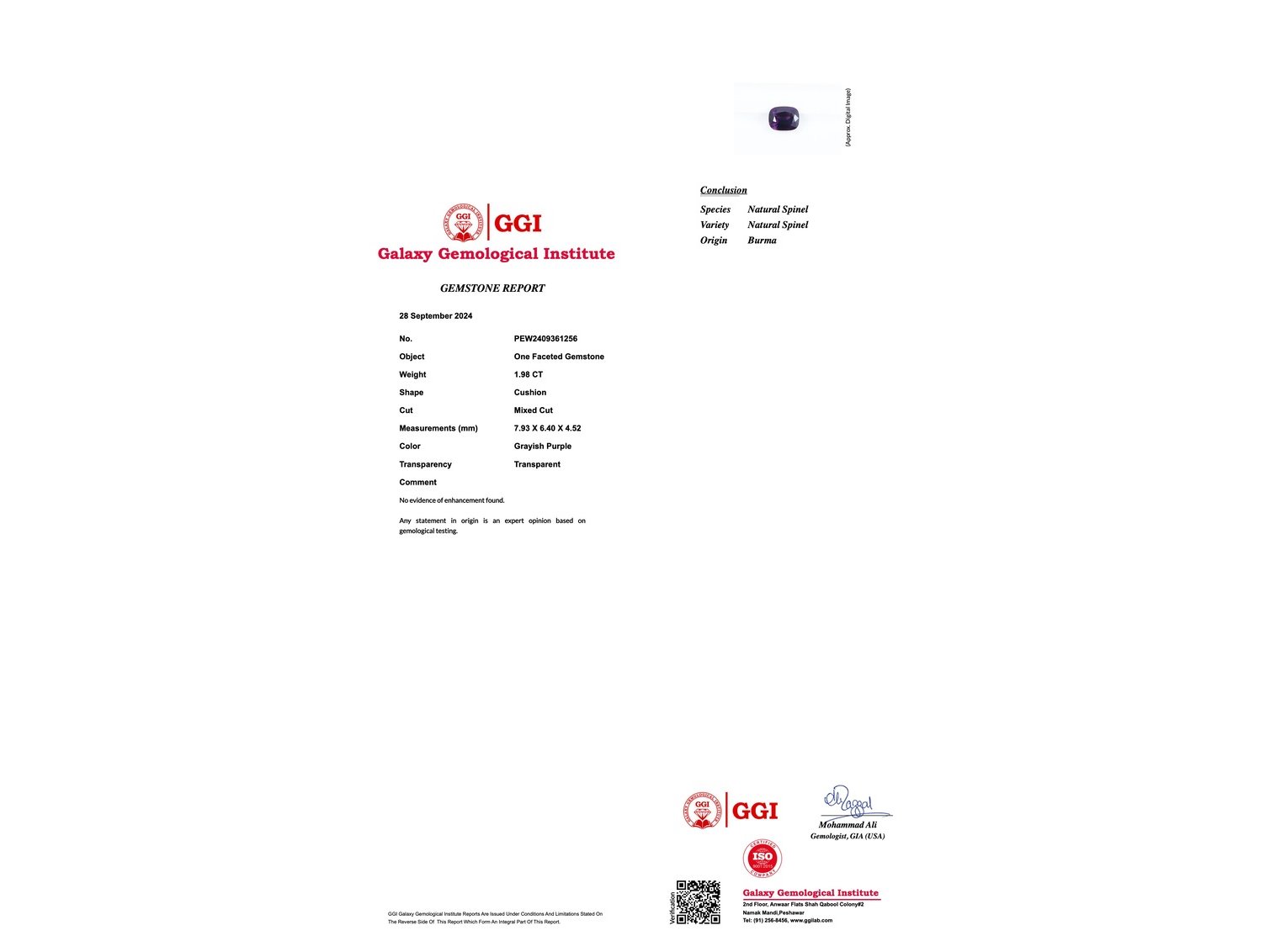 Product: Spinel - 1.98 carat natuurlijke burma spinel Specificaties: Edelsteen: Burma spinel Aantal: 1 stuk Slijpvorm: Kussenvorm geslepen Gewicht (carat): 1.98 carat Kleur: Paars Zuiverheid: Met natuurlijke insluitsels Conditie: Nieuw Verpakking: Edelsteendoos Toelichting: De kwaliteit is overgenomen van het rapport behorend bij item. De waardebepaling is een beoordeling van een gecertificeerde diamantair, gebaseerd op consumentenprijzen. Consumentenprijs: € 7.040,-