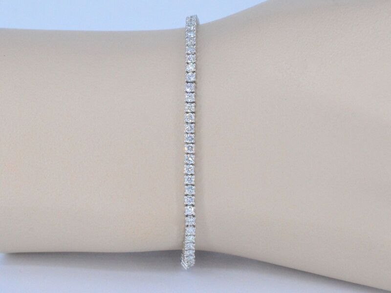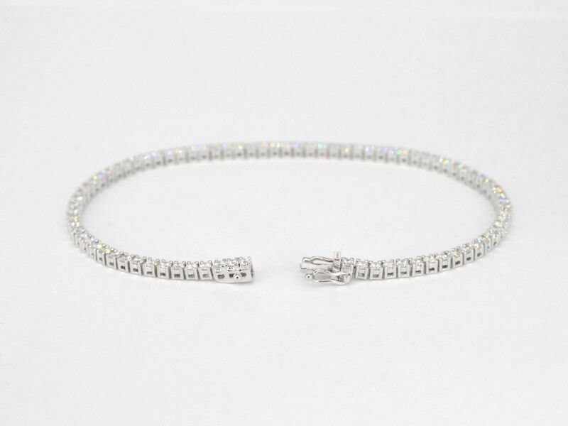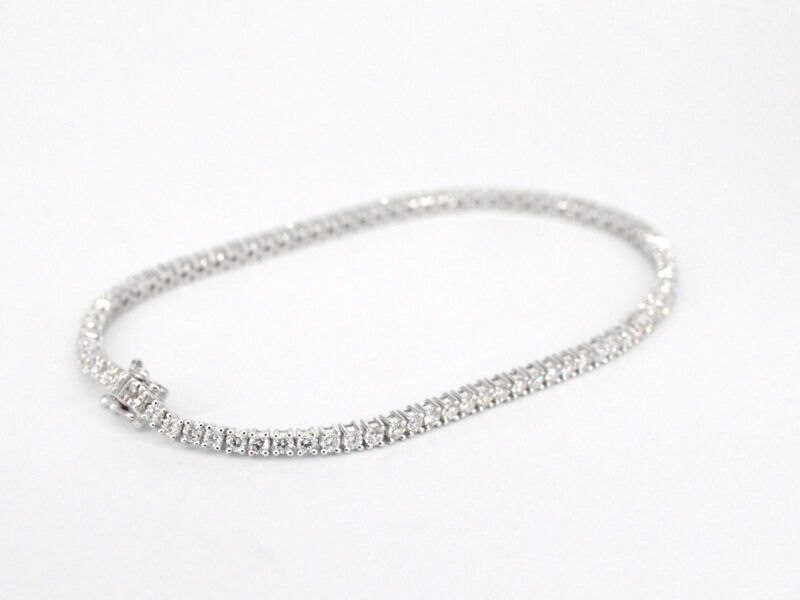Product: Witgouden tennisarmband met 3.00 carat diamanten Specificaties: Diamant: Natuurlijk Slijpvorm: Briljant geslepen Gewicht (carat): 3.00 carat Kleur: F-G Zuiverheid: VS Slijpkwaliteit: Excellent Juweel: Armband Gewicht: 8.8 gram Afmetingen/lengte: 17-18 cm Materiaal: 18K goud (750) Conditie: Nieuw Verpakking: Luxe sieradendoos Toelichting: De kwaliteit is overgenomen van het rapport behorend bij item. De waardebepaling is een beoordeling van een gecertificeerde diamantair, gebaseerd op consumentenprijzen. Consumentenprijs: € 17.903,-