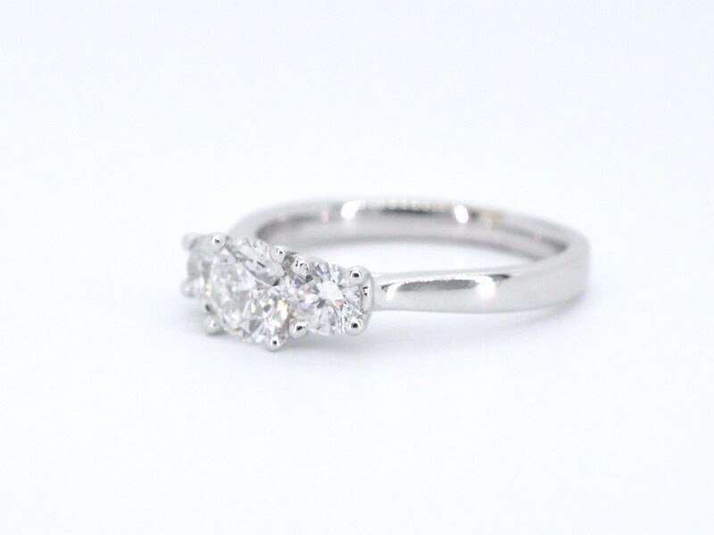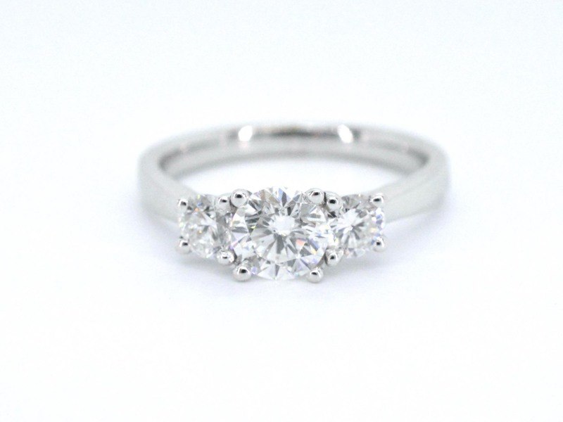 Product: Witgouden trinity ring met briljant geslepen diamanten Specificaties: Diamant: Natuurlijk Aantal: 1 stuk Slijpvorm: Briljant geslepen Gewicht (carat): 0.75 carat Kleur: F-G Zuiverheid: VVS Slijpkwaliteit: Zeer mooi Diamant (secundair): Diamanten Aantal diamanten: 2 stuks Slijpvorm: Briljant geslepen Gewicht (carat): 0.50 carat totaal Kleur: F-G Zuiverheid: VVS Slijpkwaliteit: Zeer mooi Juweel: Ring Gewicht: 4.2 gram Ringmaat (op maat gemaakt*): 53 (17 mm) Materiaal: 18K goud (750) Conditie: Nieuw Verpakking: Luxe sieradendoos Toelichting: De kwaliteit is overgenomen van het rapport behorend bij item. De waardebepaling is een beoordeling van een gecertificeerde diamantair, gebaseerd op consumentenprijzen. Consumentenprijs: € 15.600,-