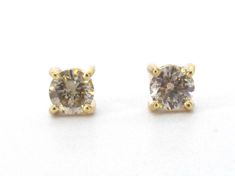 Product: Gouden solitair oorbellen met natuurlijke briljant geslepen diamanten Specificaties: Diamant: Natuurlijk Aantal: 2 stuks Slijpvorm: Briljant geslepen Gewicht (carat): 0.40 carat Kleur: Champagne Zuiverheid: Met natuurlijke insluitsels Slijpkwaliteit: Zeer mooi Juweel: Oorbellen Gewicht: 1 gram Materiaal: 14k goud (585) Conditie: Nieuw Verpakking: Luxe sieradendoos Toelichting: De kwaliteit is overgenomen van het rapport behorend bij item. De waardebepaling is een beoordeling van een gecertificeerde diamantair, gebaseerd op consumentenprijzen. Consumentenprijs: € 2.720,-