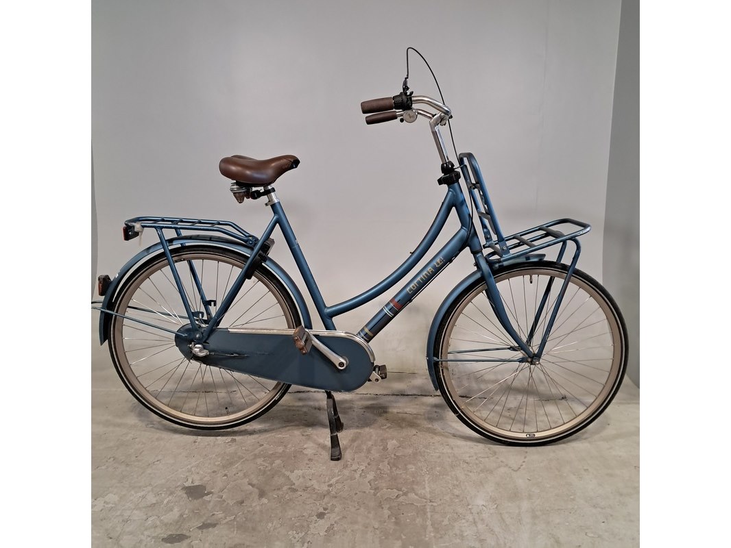 Merk: Cortina Product: Damesfiets Afmeting: Framemaat ca. 61 cm Conditie: gebruikt Specificaties: Uitgerust met transportrek 3 versnellingen, kapje defect Terug trap rem
