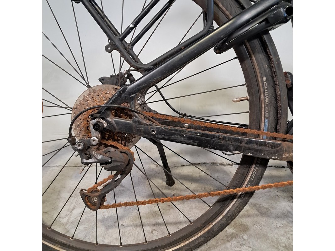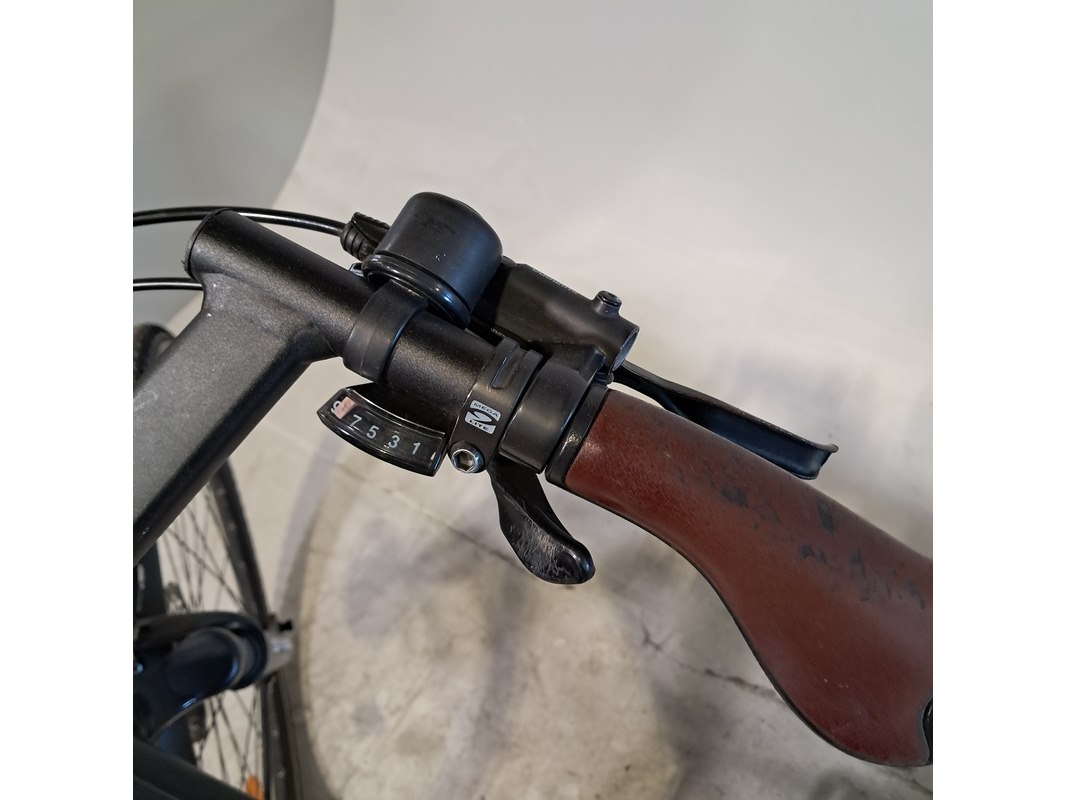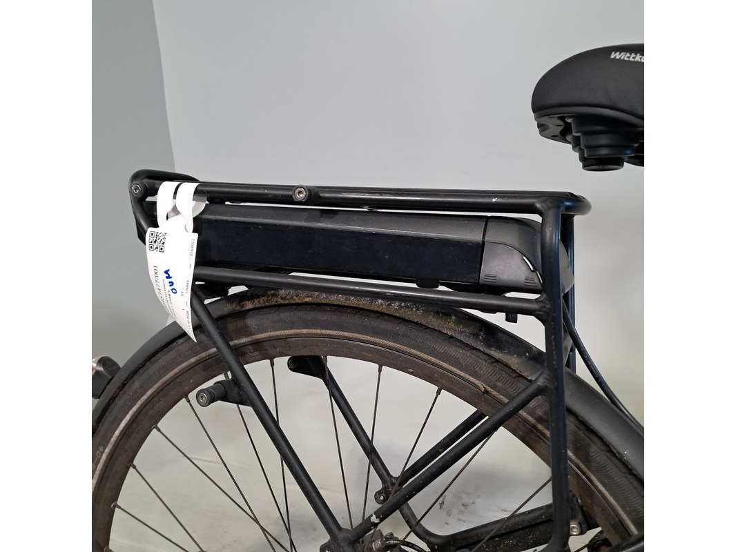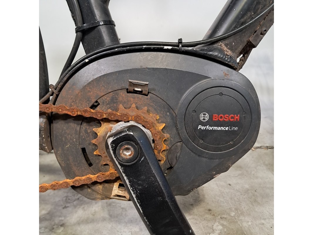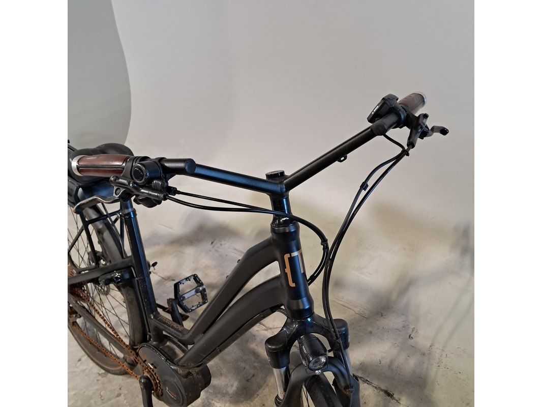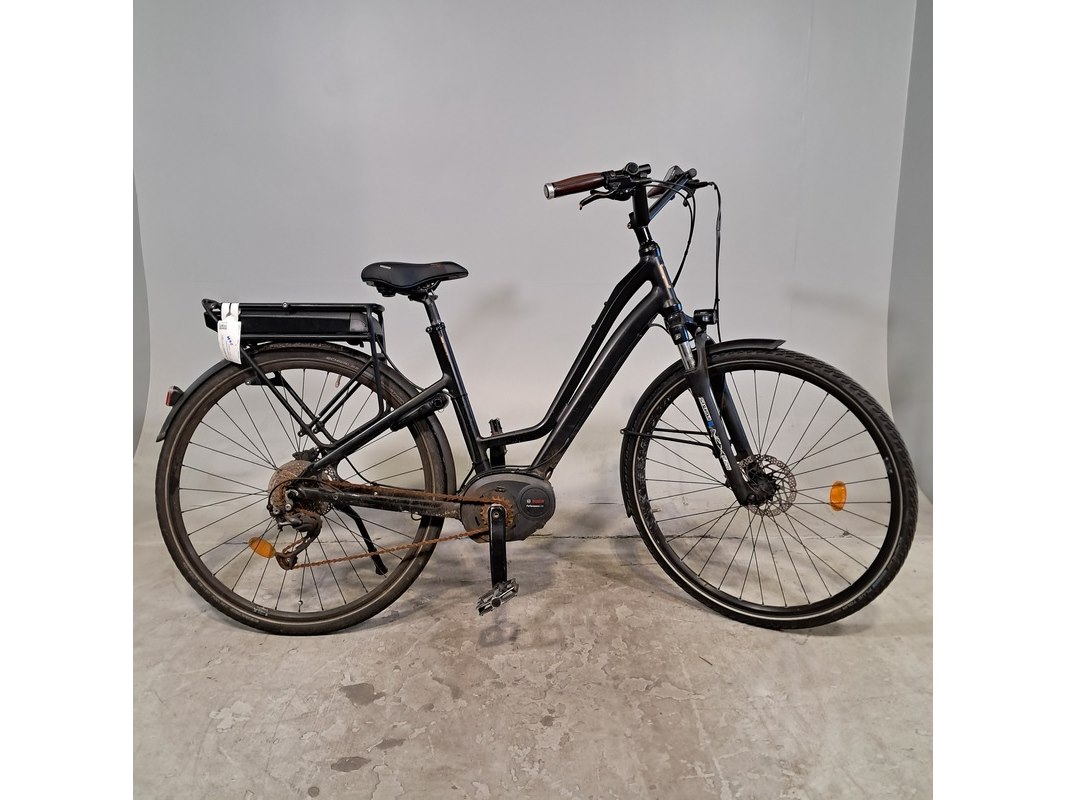 Merk: Moustache Bikes Product: Elektrische damesfiets Afmeting: Framemaat ca. 49 cm Conditie: gebruikt Specificaties: Geveerde voorvork Schijfrem voor en achter 9 versnellingen Inclusief fietscomputer en accu Afgelezen tellerstand: 5671. Bosch PerformanceLine middenmotor Exclusief acculader en sleutel, accu staat op slot.