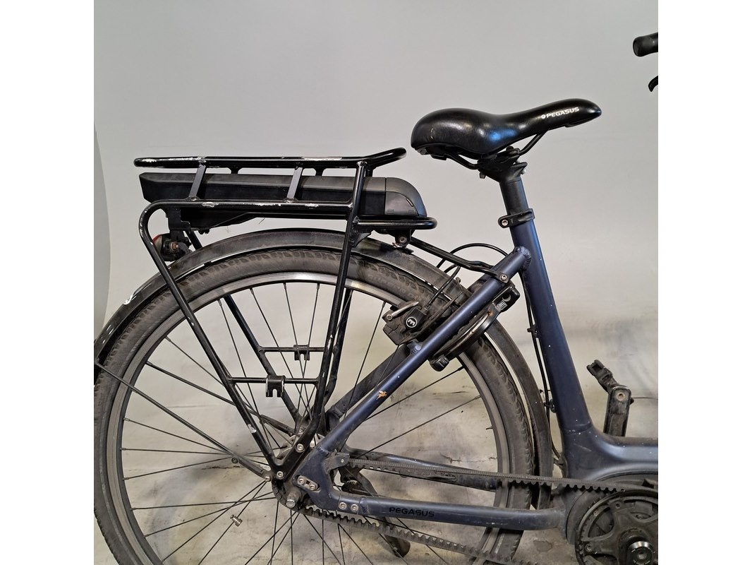 Merk: Pegasus Product: Elektrische damesfiets Afmeting: Framemaat ca. 50 cm Conditie: gebruikt Specificaties: Geveerde voorvork 7 versnellingen Inclusief fietscomputer en accu Afgelezen tellerstand 2224. Bosch ActiveLine plus middenmotor Exclusief acculader en accu sleutel. Accu staat op slot. Fiets slot doorgeknipt Spatbord voor ontbreekt Speling op voor en achterwiel