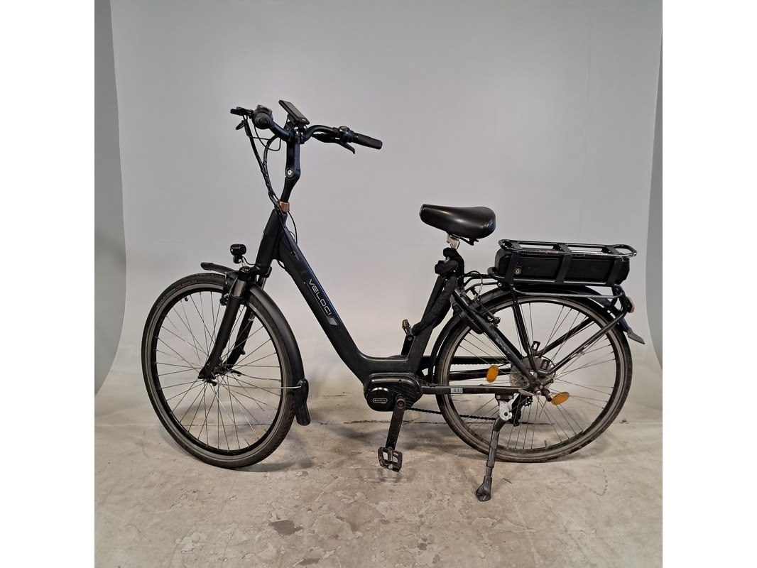 Merk: Veloci Product: Elektrische damesfiets Afmeting: Framemaat ca. 51 cm Conditie: gebruikt Specificaties: Geveerde voorvork 7 versnellingen Inclusief fietscomputer en accu Bafang M300 middenmotor Exclusief acculader en sleutels. Fiets en accu staan op slot.