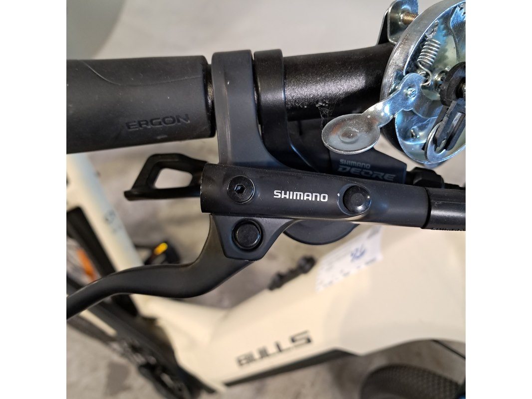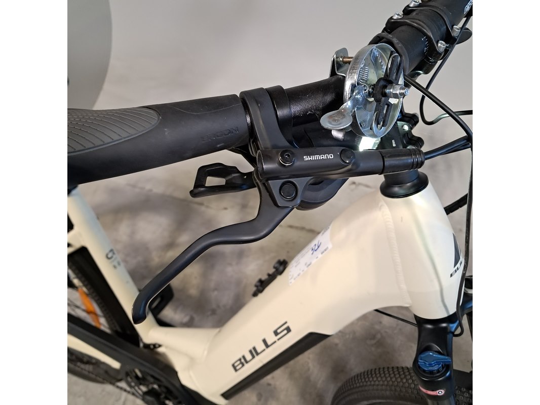 Merk: Bulls Product: Elektrische damesfiets Afmeting: Framemaat ca. 50 cm Conditie: gebruikt Specificaties: Geveerde voorvork en zadelpen Schijfrem voor en achter 10 versnellingen Inclusief fietscomputer en accu Brose Fit middenmotor Afgelezen tellerstand 364. Exclusief sleutel en acculader. Accubak staat op slot