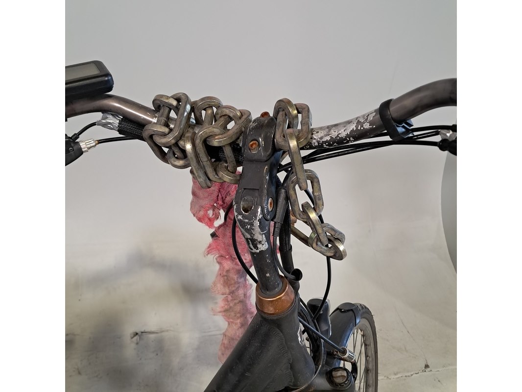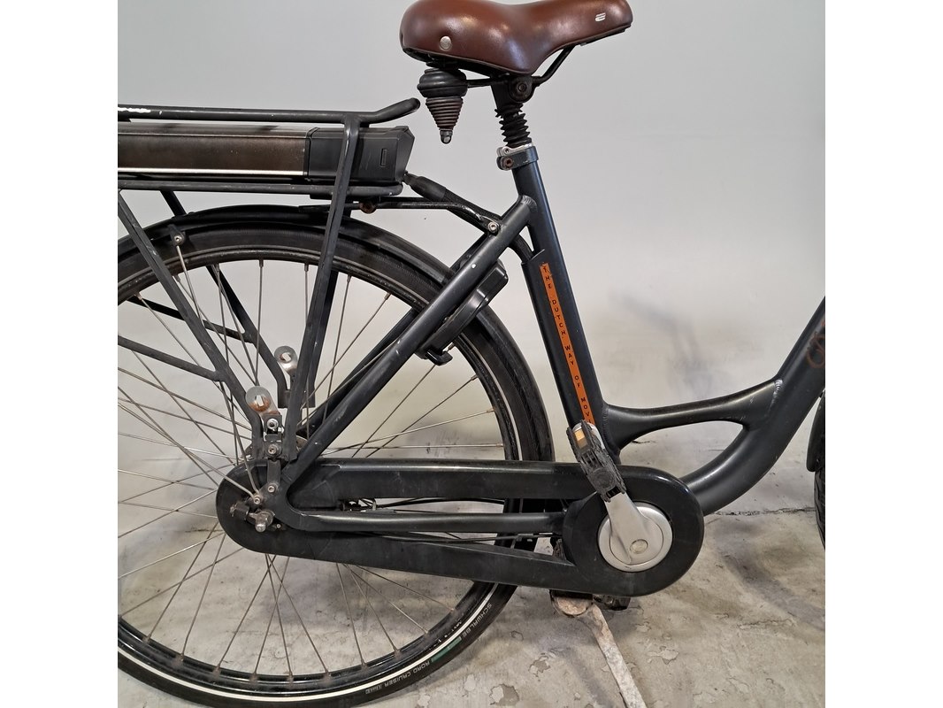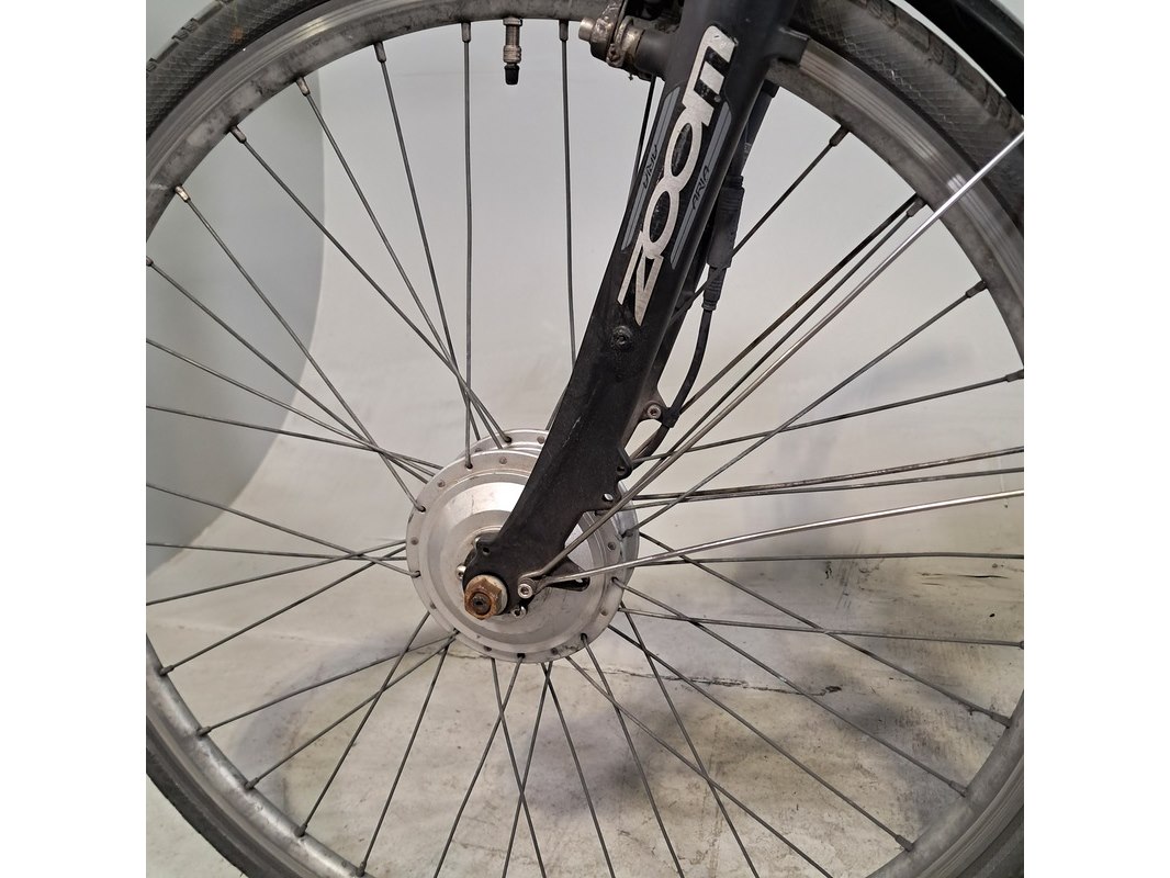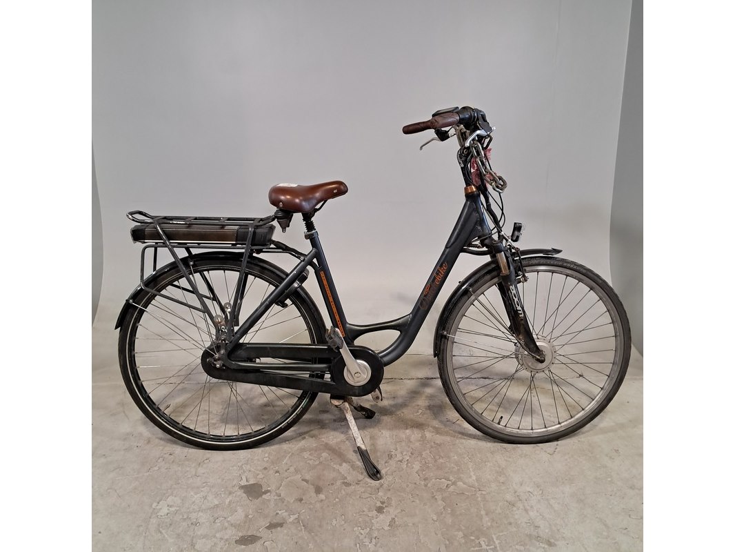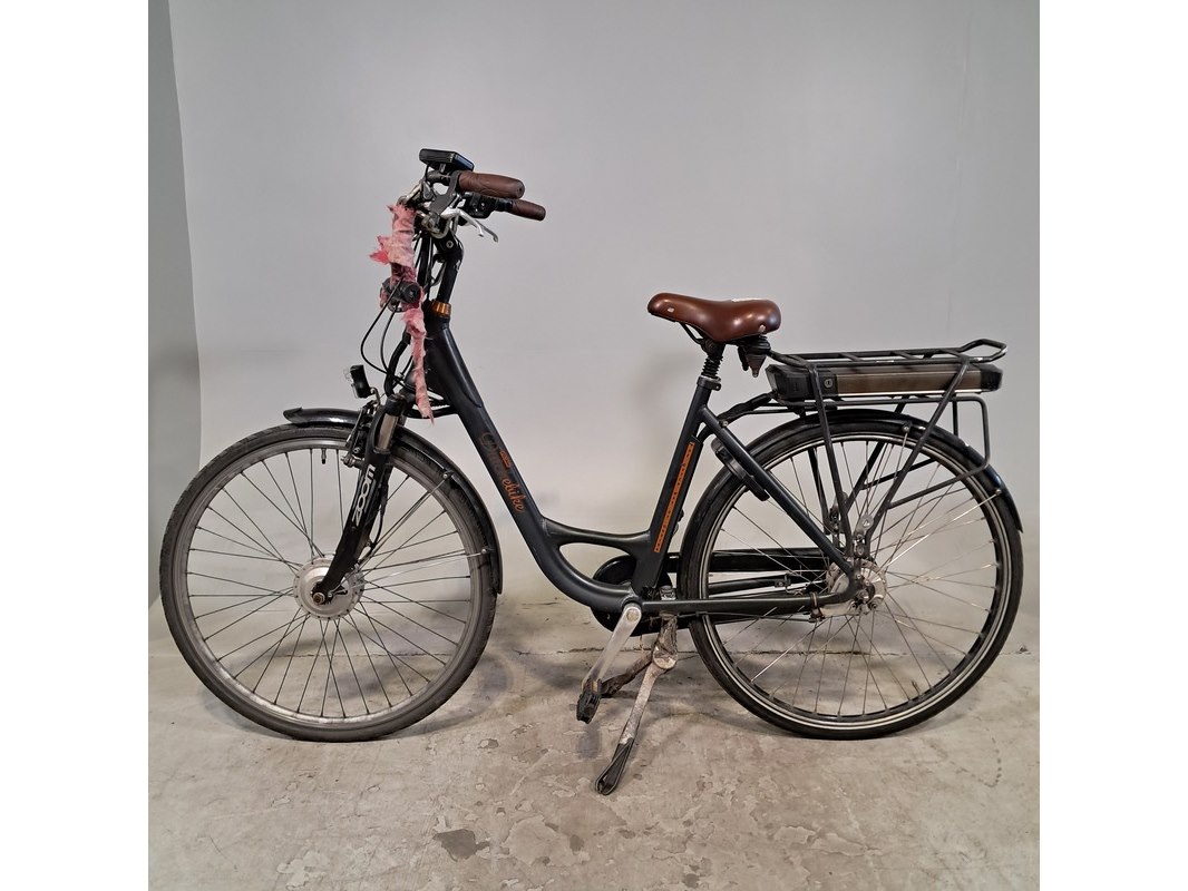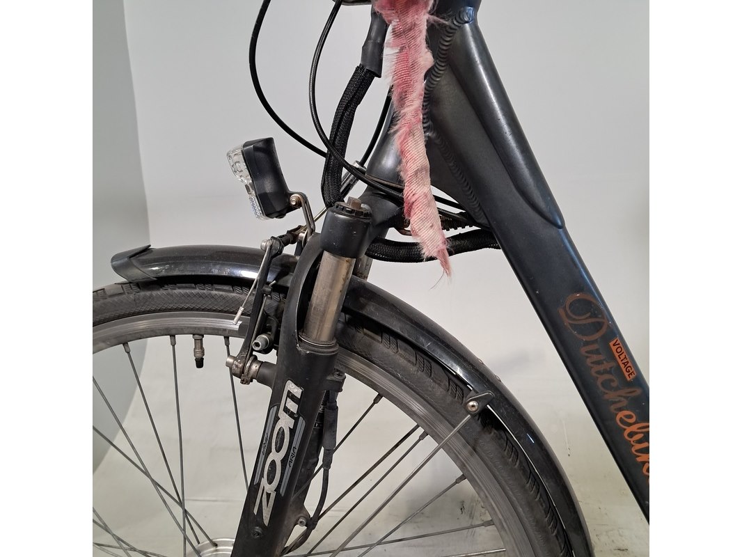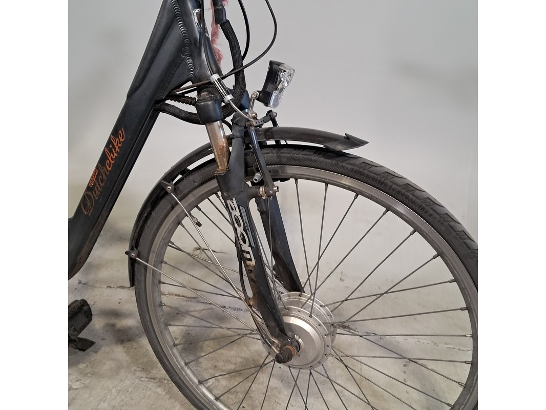 Merk: Dutch E-Bike Product: Elektrische damesfiets Afmeting: Framemaat ca. 51 cm Conditie: gebruikt Specificaties: Geveerde voorvork en zadelpen Inclusief fietscomputer en accu Exclusief acculader en sleutel. Accu staat op slot. Uitgerust met voorwielmotor .