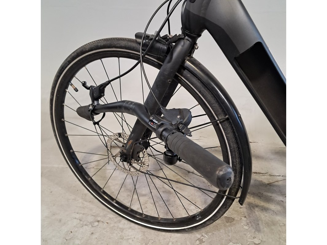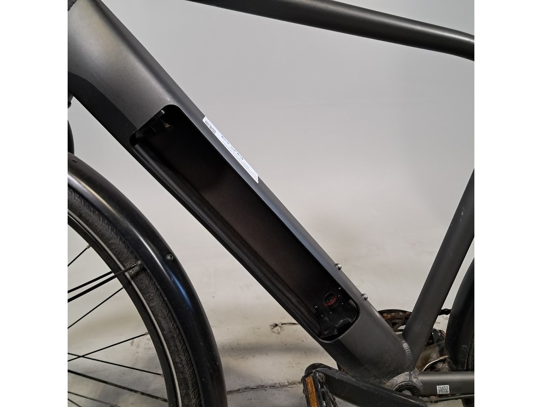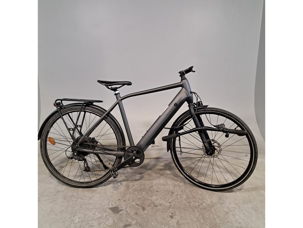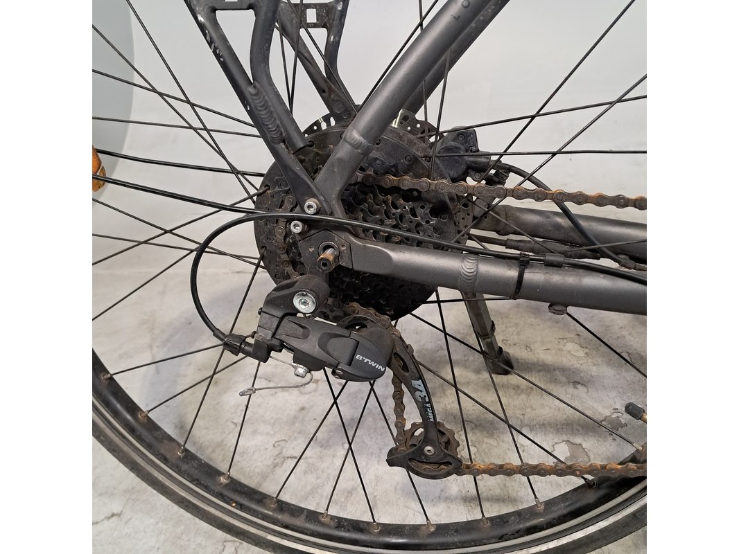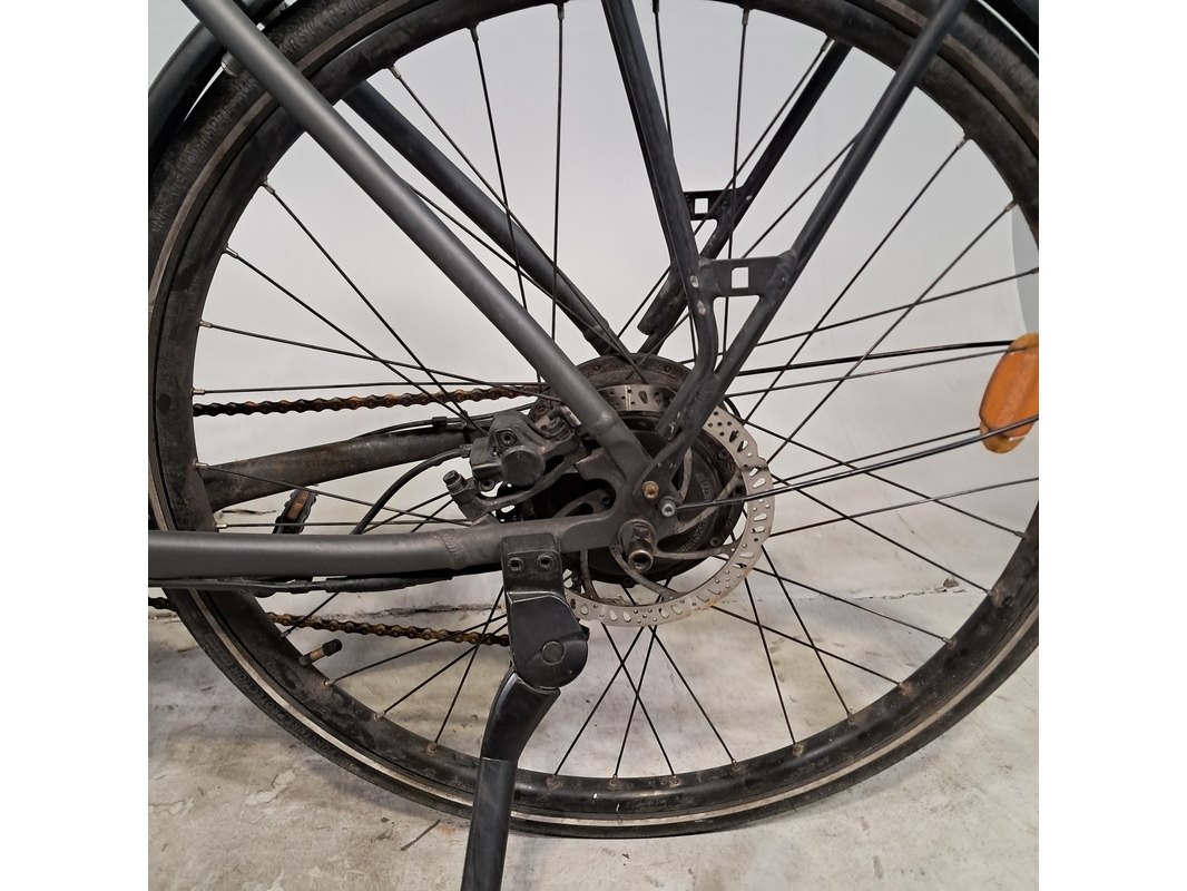 Merk: Elops Product: Elektrische damesfiets Afmeting: Framemaat ca. 53 cm / Maat L Conditie: gebruikt Specificaties: 8 versnellingen Schijfrem voor en achter Uitgerust met achterwielmotor Fietscomputer, accu, afdekplaat accu, acculader en andere toebehoren ontbreken Stuur ligt los, beugel ontbreekt