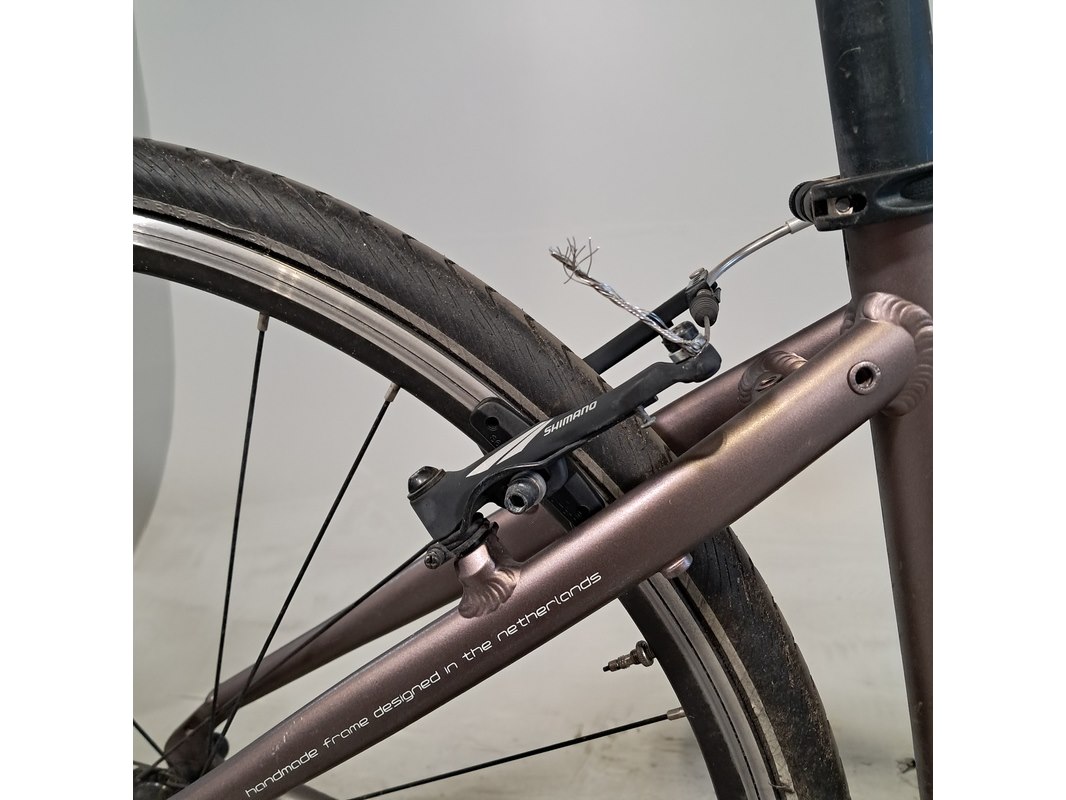 Merk: Be One Product: Racefiets Afmeting: Framemaat ca. 43 cm Conditie: gebruikt Specificaties: 2x8 versnellingen Shimano V-Brake remsysteem Shimano Tiasgra derailleur