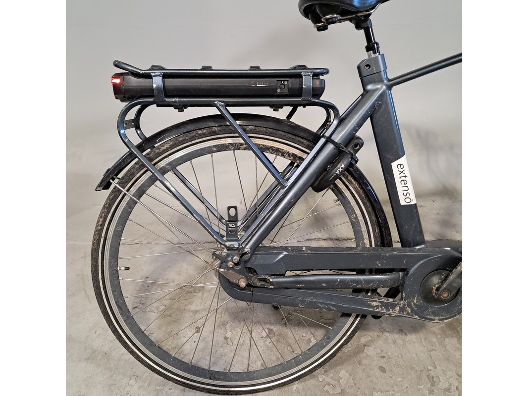 Merk: Extenso Product: Elektrische herenfiets Afmeting: Framemaat ca. 56 cm Conditie: gebruikt Specificaties: Geveerde voorvork 8 versnellingen Inclusief fietscomputer en accu Afgelezen tellerstand 4608 Exclusief acculader. Sleutel accu gaat rond, accu zit vast. Spatbord voor hangt los