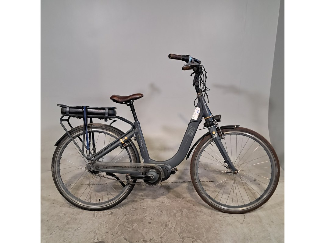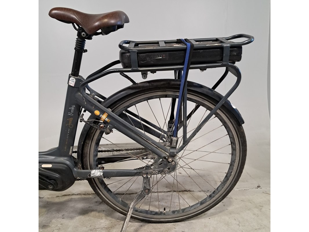 Merk: Jools Product: Elektrische damesfiets Afmeting: Framemaat ca. Conditie: gebruikt Specificaties: Geveerde voorvork en zadelpen 8 versnellingen Inclusief fietscomputer en accu Uitgerust met Bafang middenmotor Afgelezen tellerstand 13616 Exclusief acculader en sleutels. Accu staat op slot Spatbord voor gebroken Spatbord achter zit los Achterlicht ontbreekt