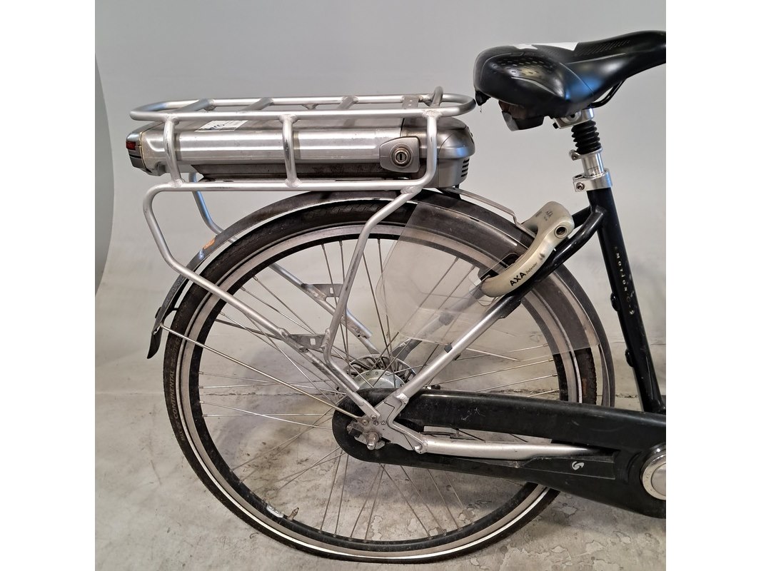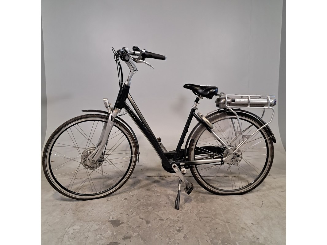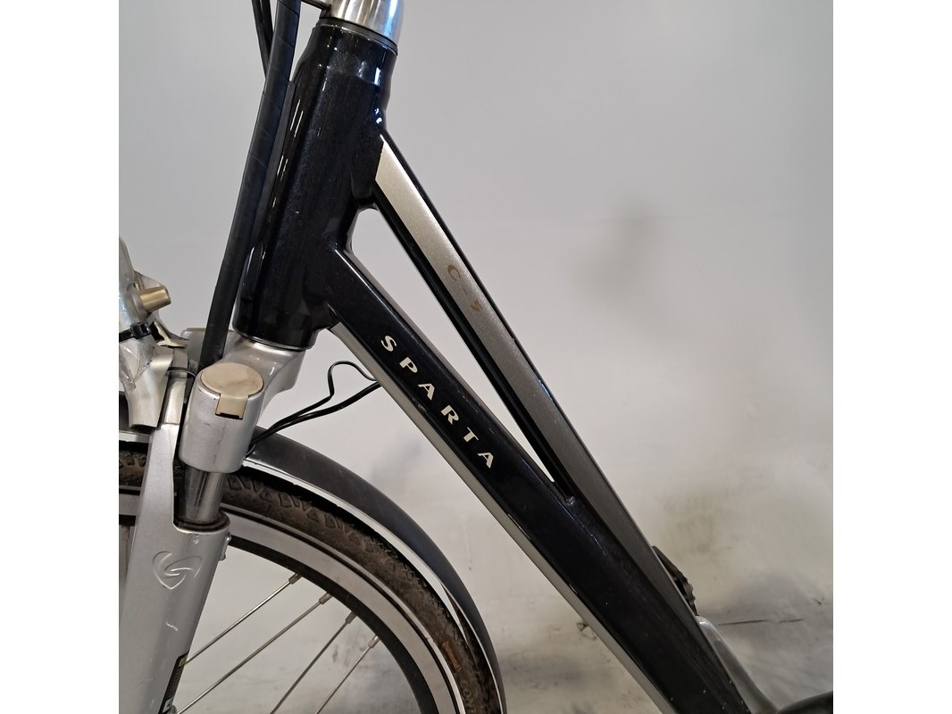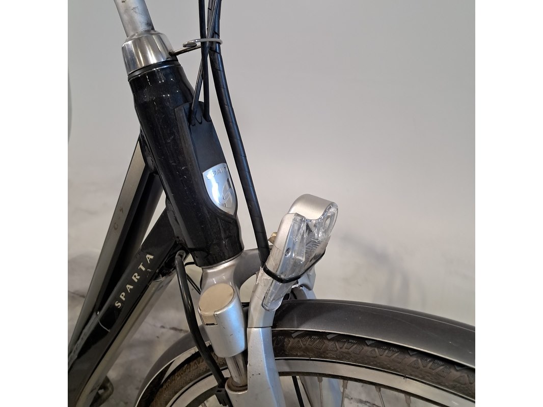 Merk: Sparta Product: Elektrische damesfiets Afmeting: Framemaat ca. 48 cm Conditie: gebruikt Specificaties: Geveerde voorvork en zadelpen 8 versnellingen Uitgerust met voorwielmotor Inclusief fietscomputer en accu Exclusief acculader en sleutels. Fiets en accu staan op slot.