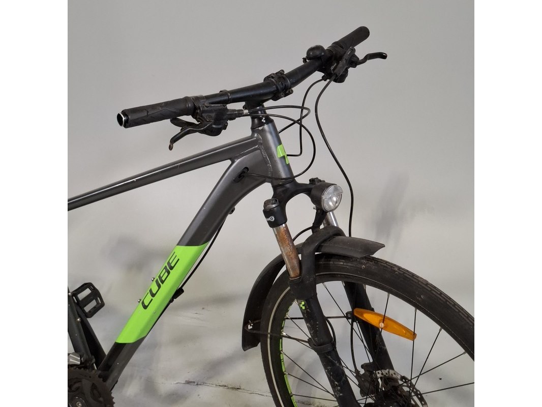 Merk: Cube Product: Herenfiets Afmeting: Framemaat ca. 49 cm Conditie: gebruikt Specificaties: Geveerde voorvork Schijfrem voor en achter 3x9 versnellingen