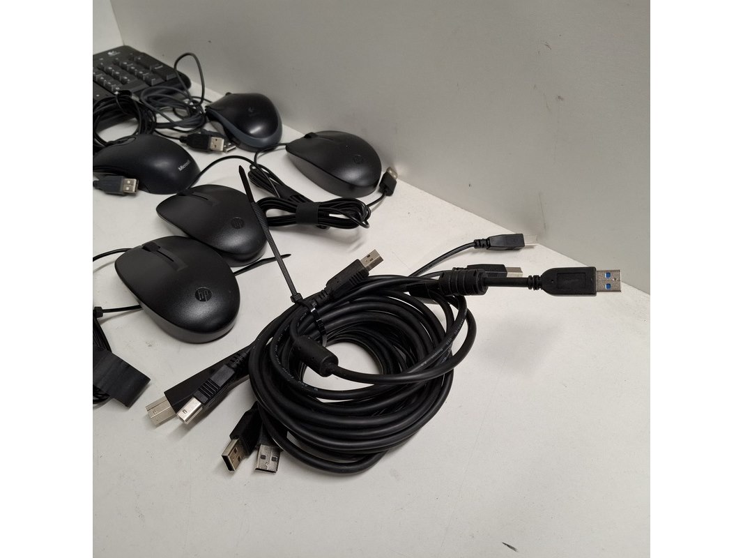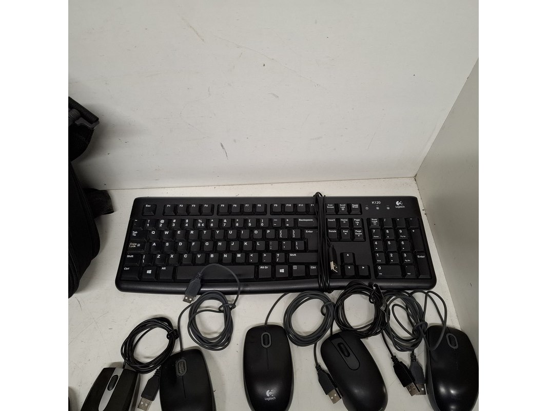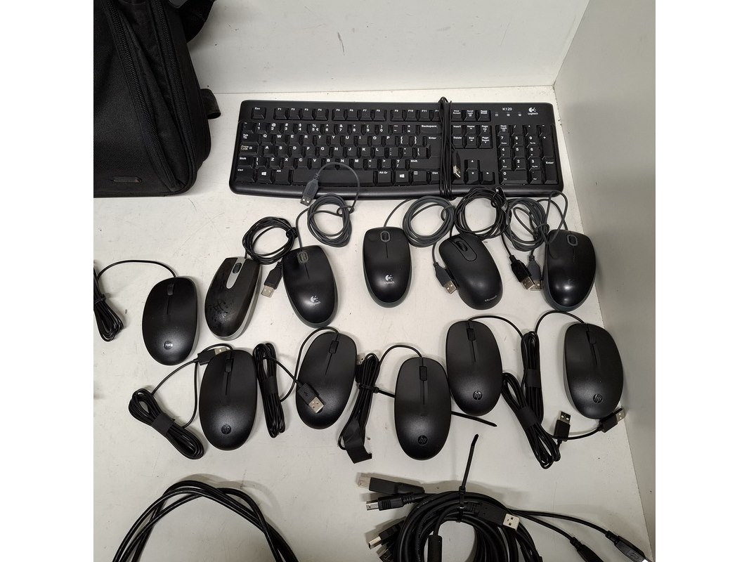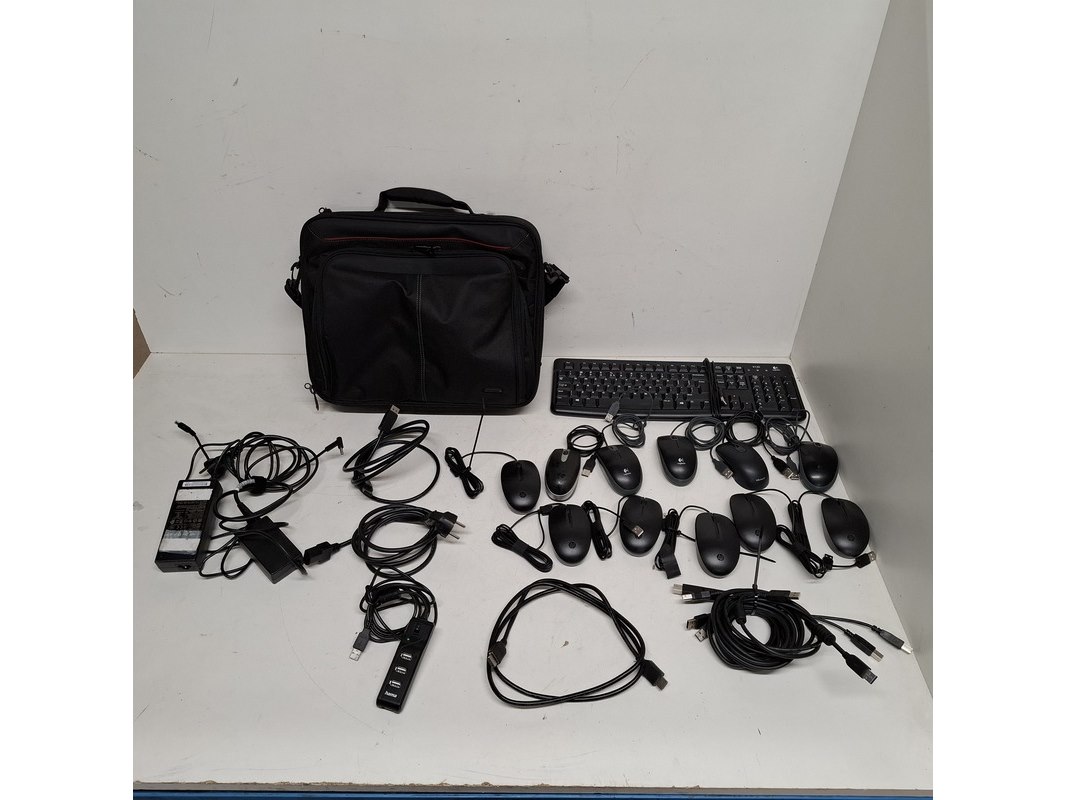 Product: Partij diversen Conditie: Gebruikt Specificaties: Bestaande uit: o.a. diverse computermuizen, toetsenbord, laptoptas, diverse kabels